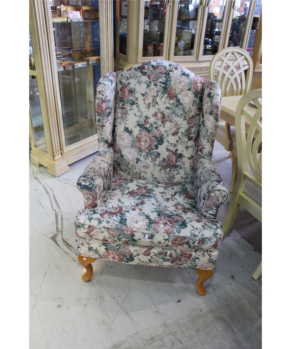 FLORAL UPHOLSTERED WING BACK CHAIR