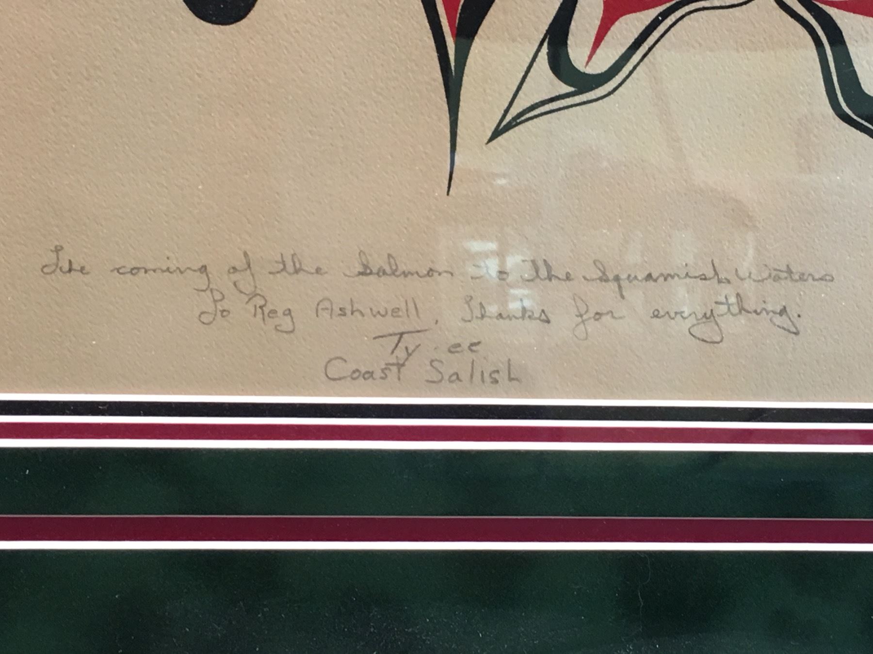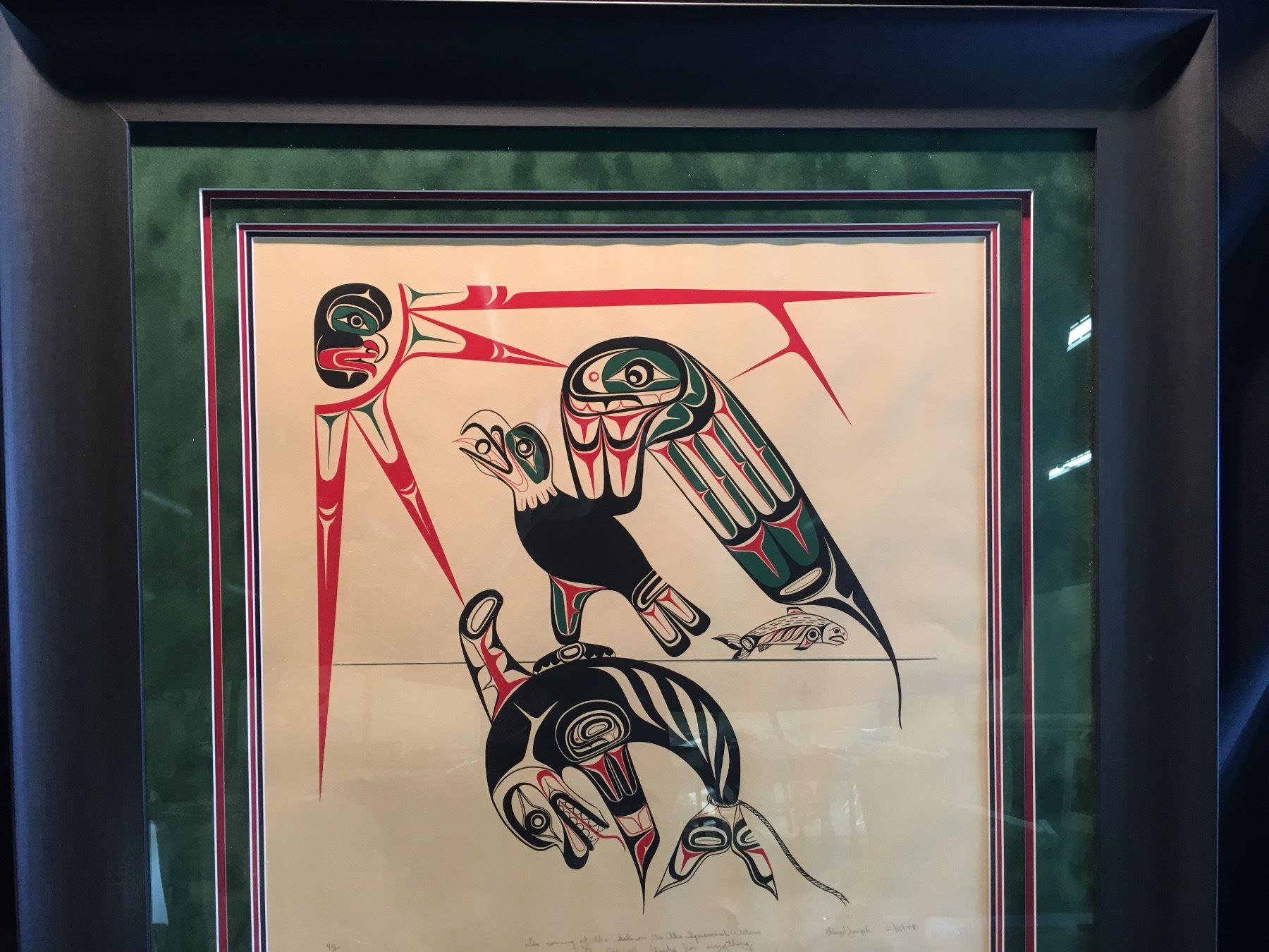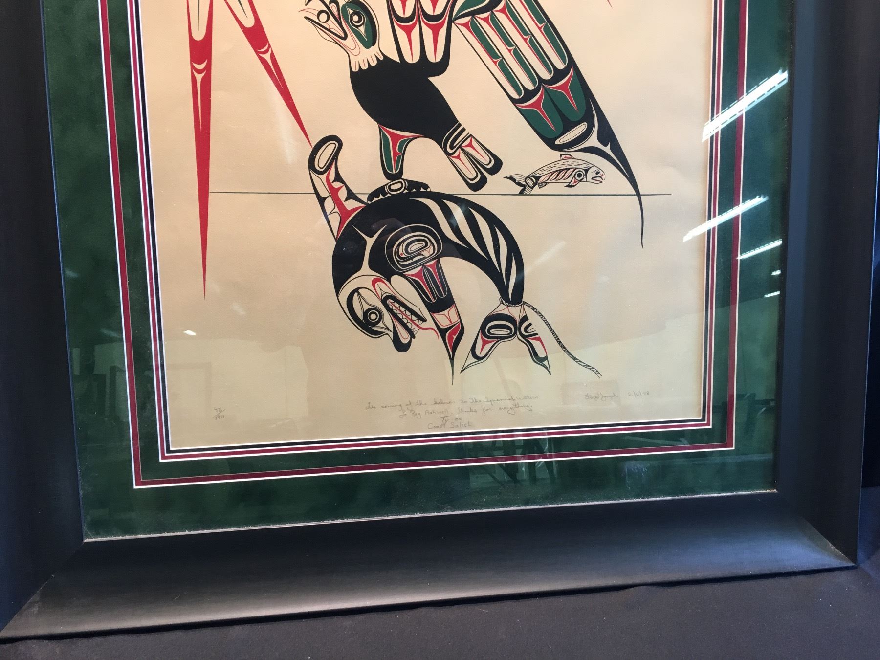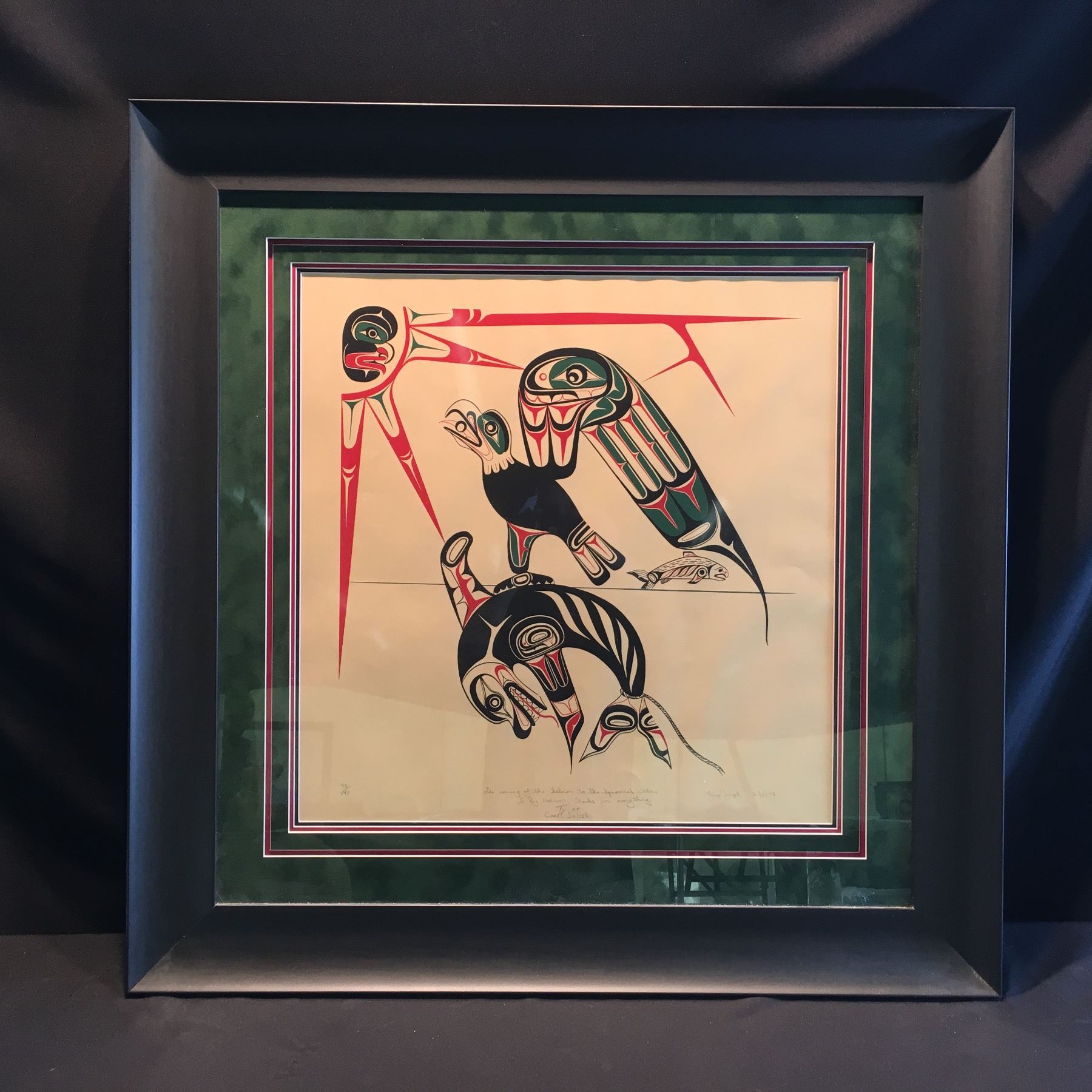 FLOYD JOSEPH, FRAMED LIMITED EDITION PRINT, "THE COMING OF THE SALMON TO THE SQUAMISH WATERS",45/190, DATED 2/11/78, SIGNED ON BOTTOM BY ARTIST, 35 1/2'' X 36 1/2''