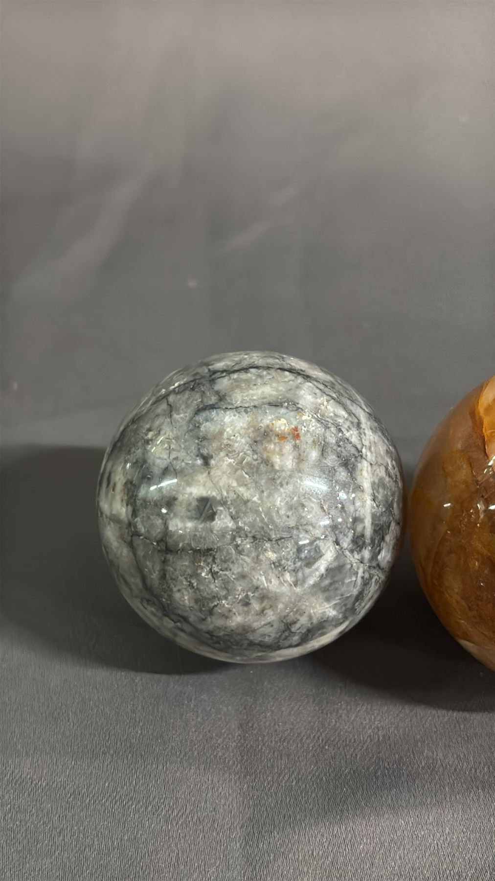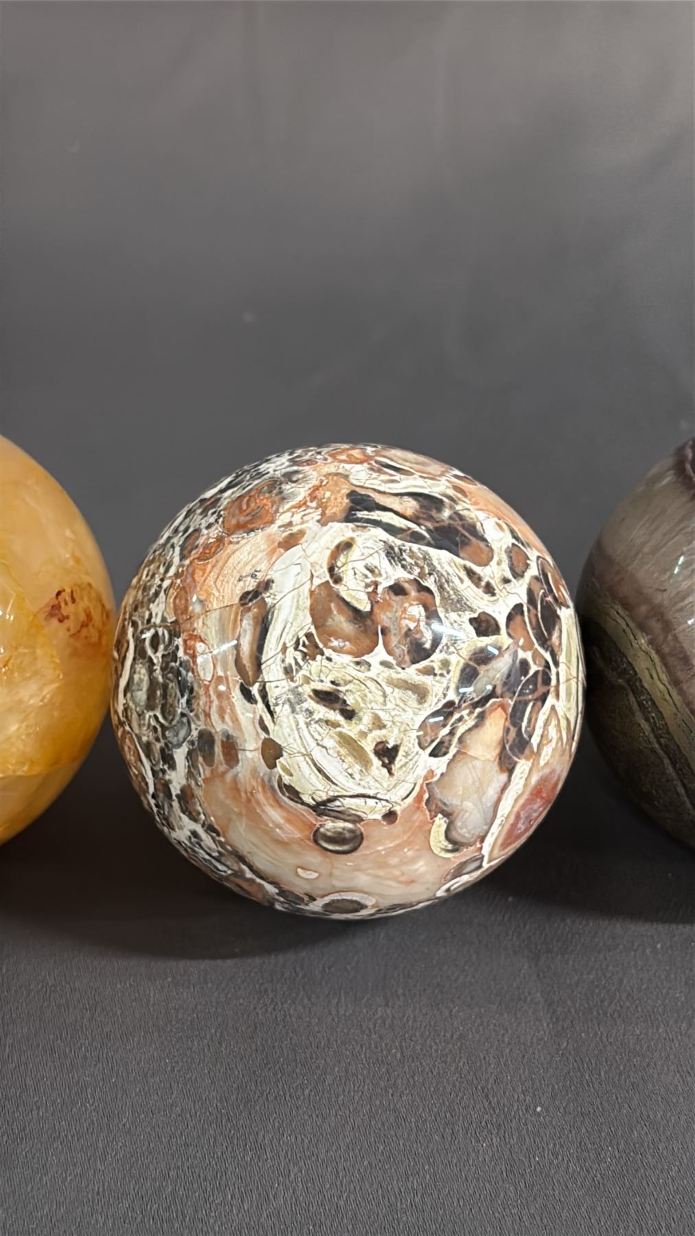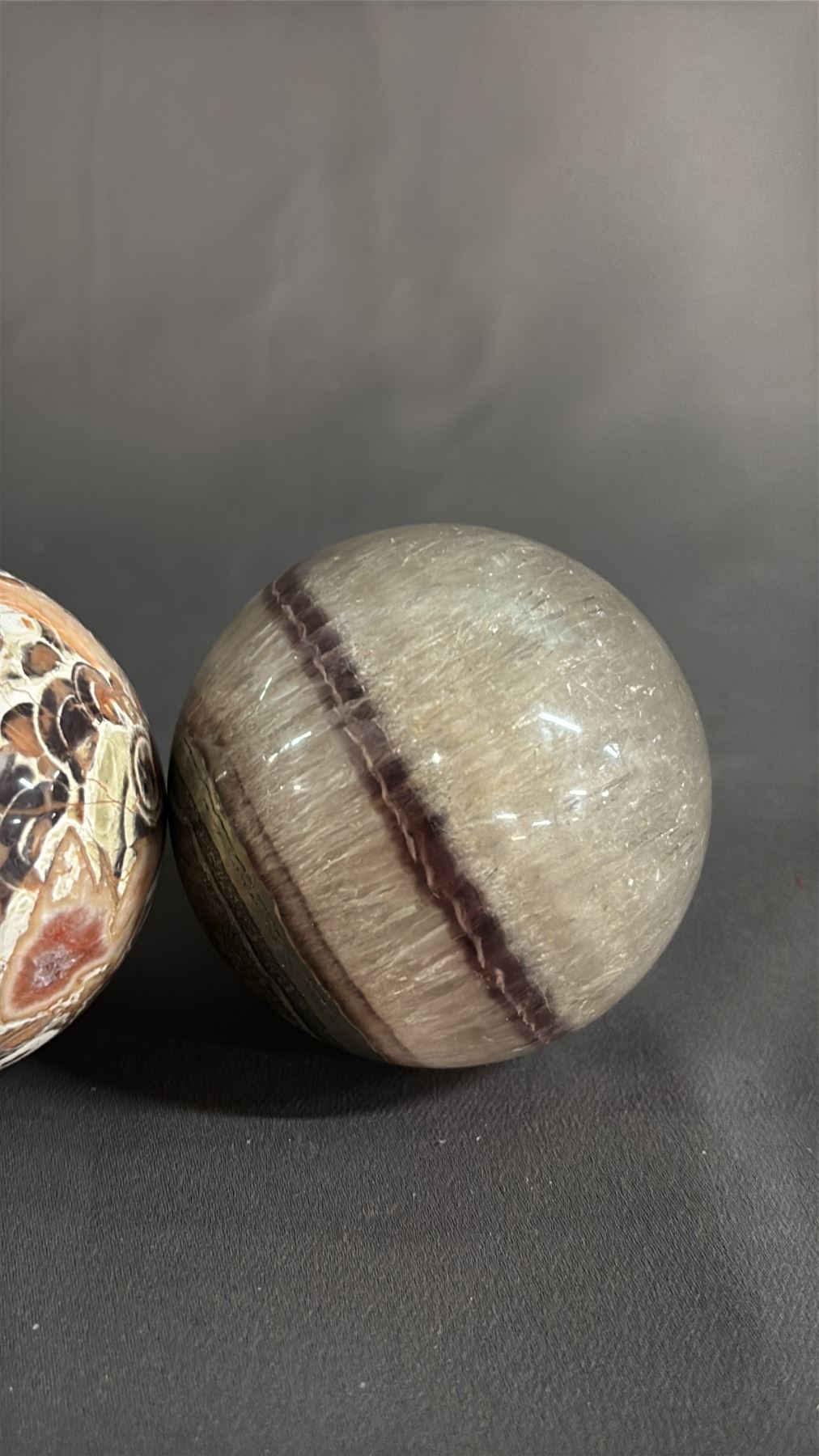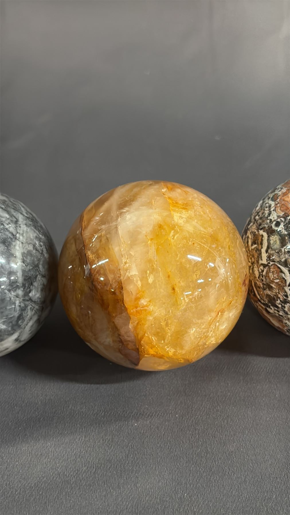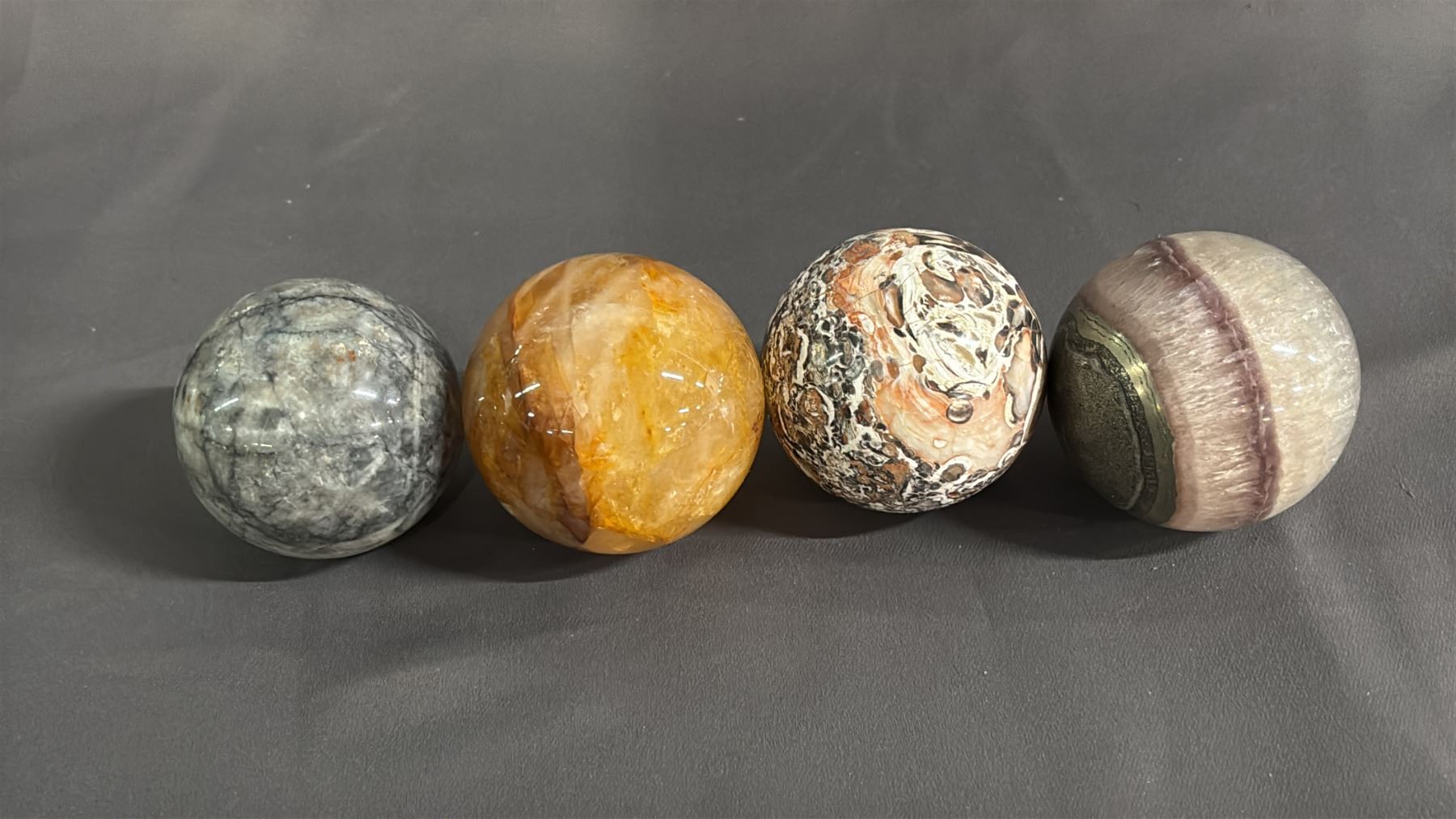 FLUORITE, MOONSTONE, GOLDEN HEALER QUARTZ & MONEY AGATE SPHERES: 2" - 2.5"