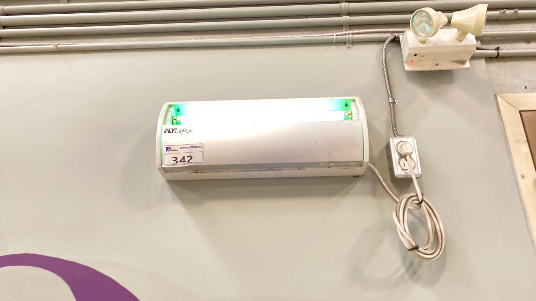 FLY LIGHT JUNIOR ELECTRIC BLUE LIGHT BUG ATTRACTIVE LIGHT WITH STICKY STRIP. ON WALL WAREHOUSE SIDE OF PRE-WEIGH ROOM *REQUIRES TOOLS & LADDER FOR REMOVAL*