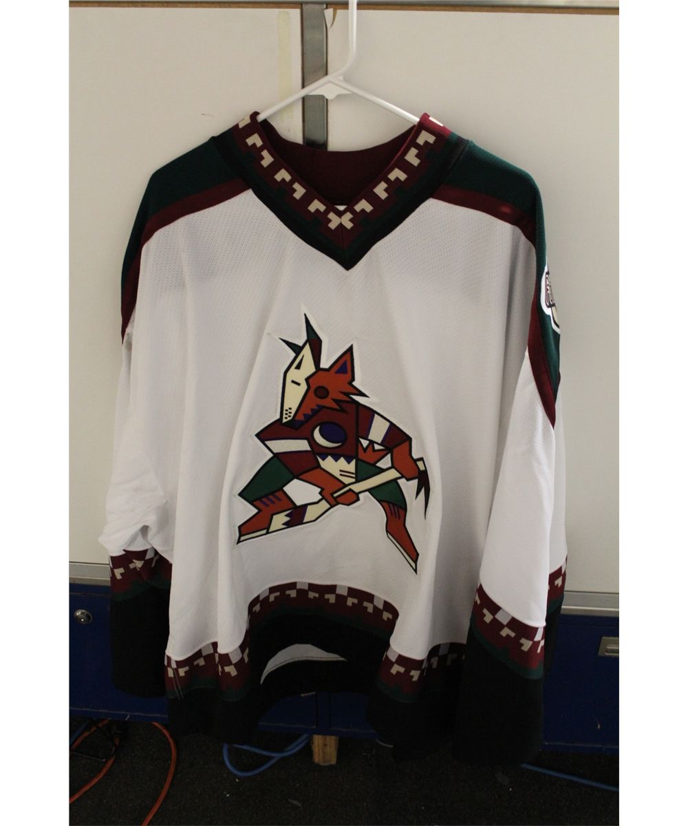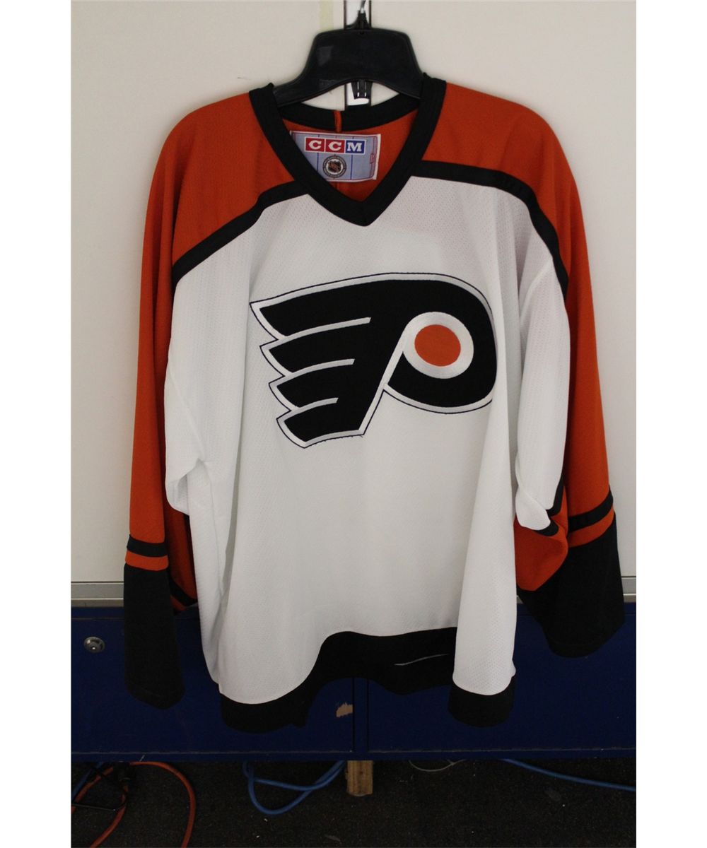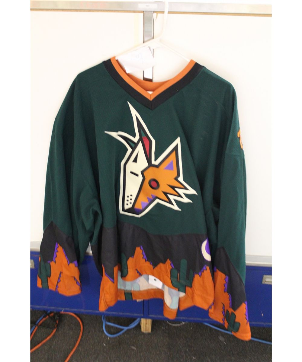FLYERS JERSEY, SPORTSCARDS, PITTSBURGH PENGUINS LEATHER JACKET AND 2 PHOENIX COYOTE JERSEYS