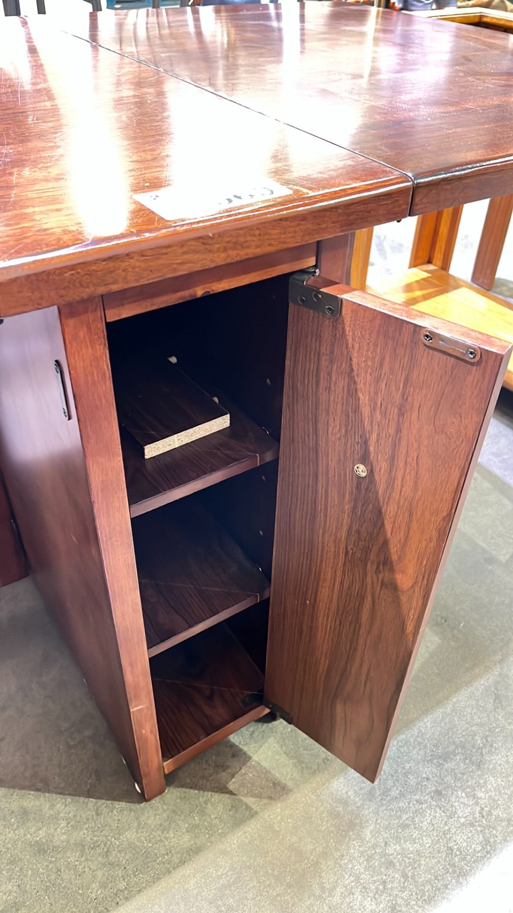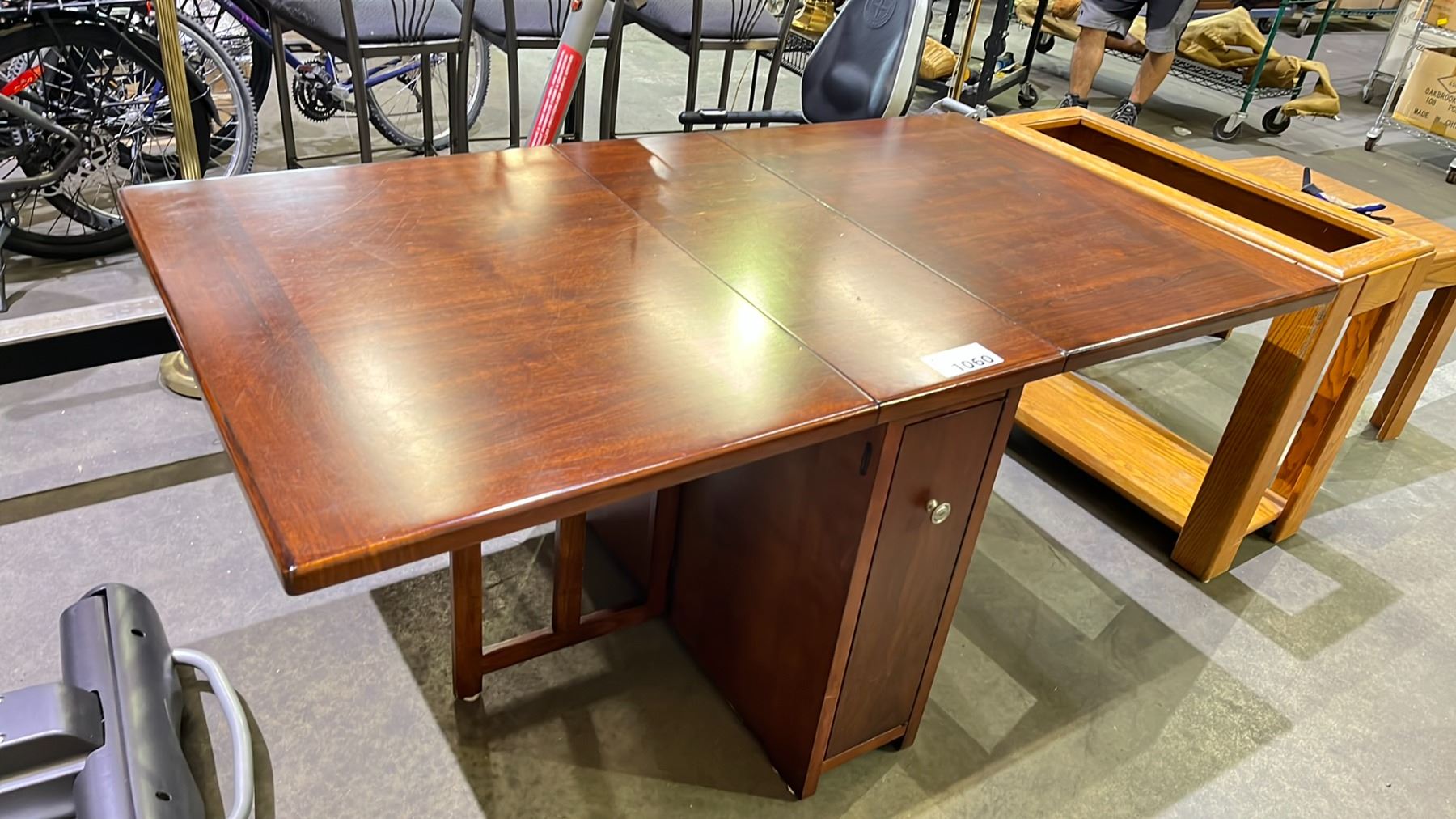 FOLD-OUT TABLE WITH STORAGE SHELVES 65" X 36" X 30"