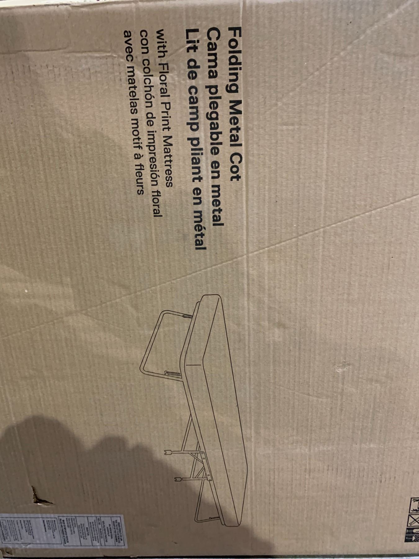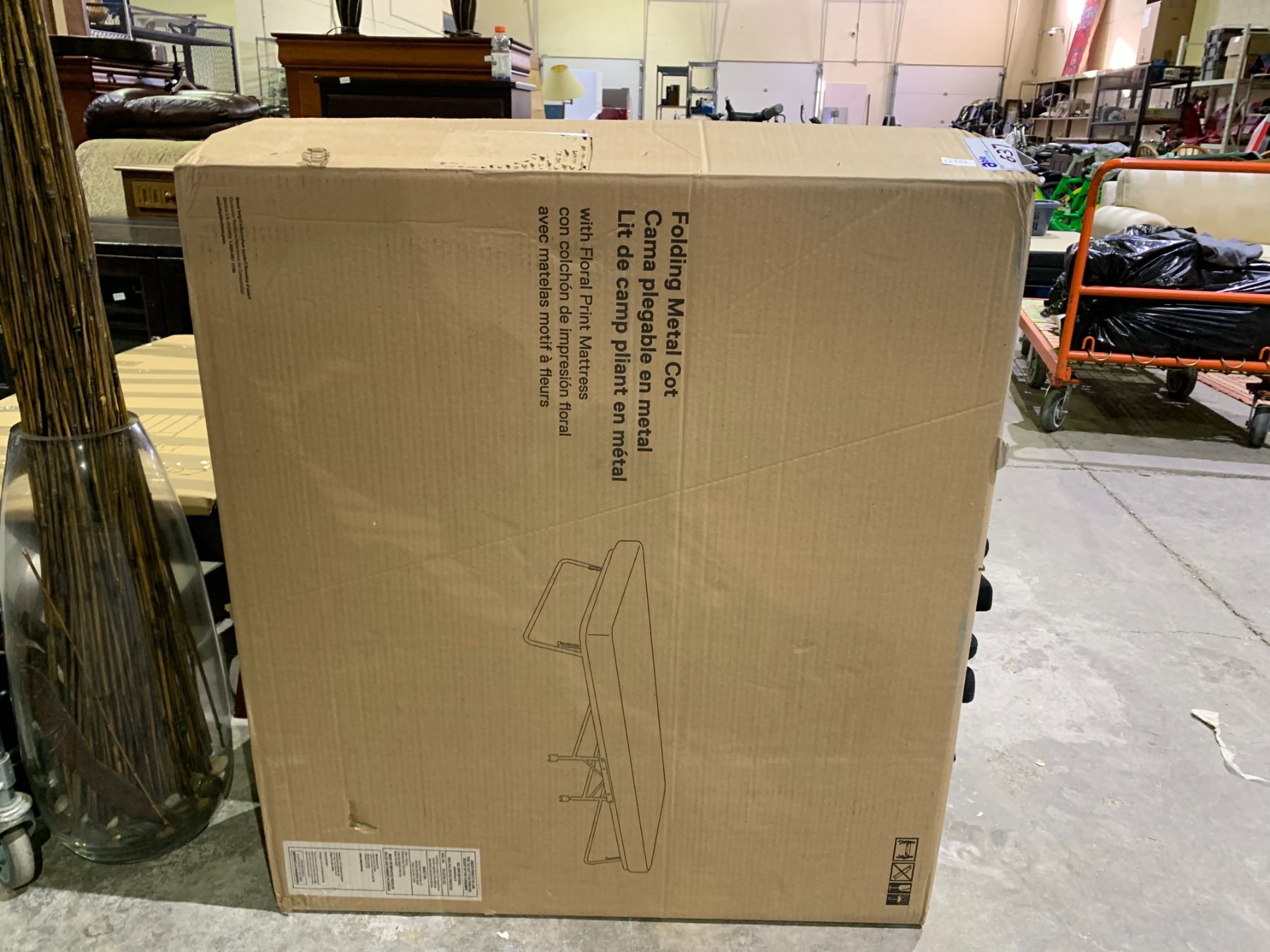 FOLDING METAL COT WITH FLORA PRINT MATTRESS