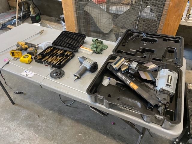 FOLDING TABLE WITH CONTENTS, TOOLS ETC.