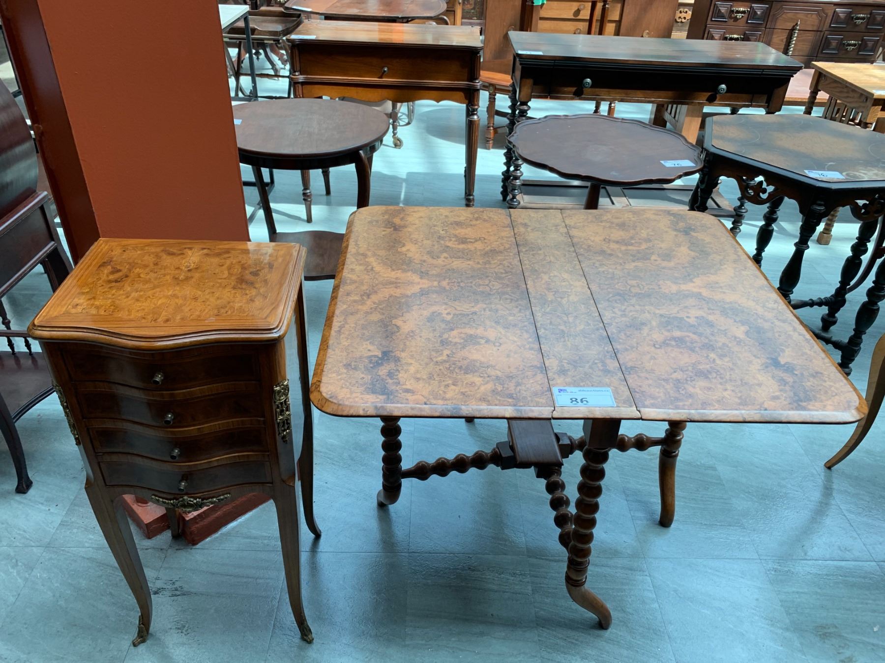 FOLDING WOOD TABLE APPROX 28"X39"X33" & 4 DRAWER WOOD CABINET APPROX 34"X16"X13"