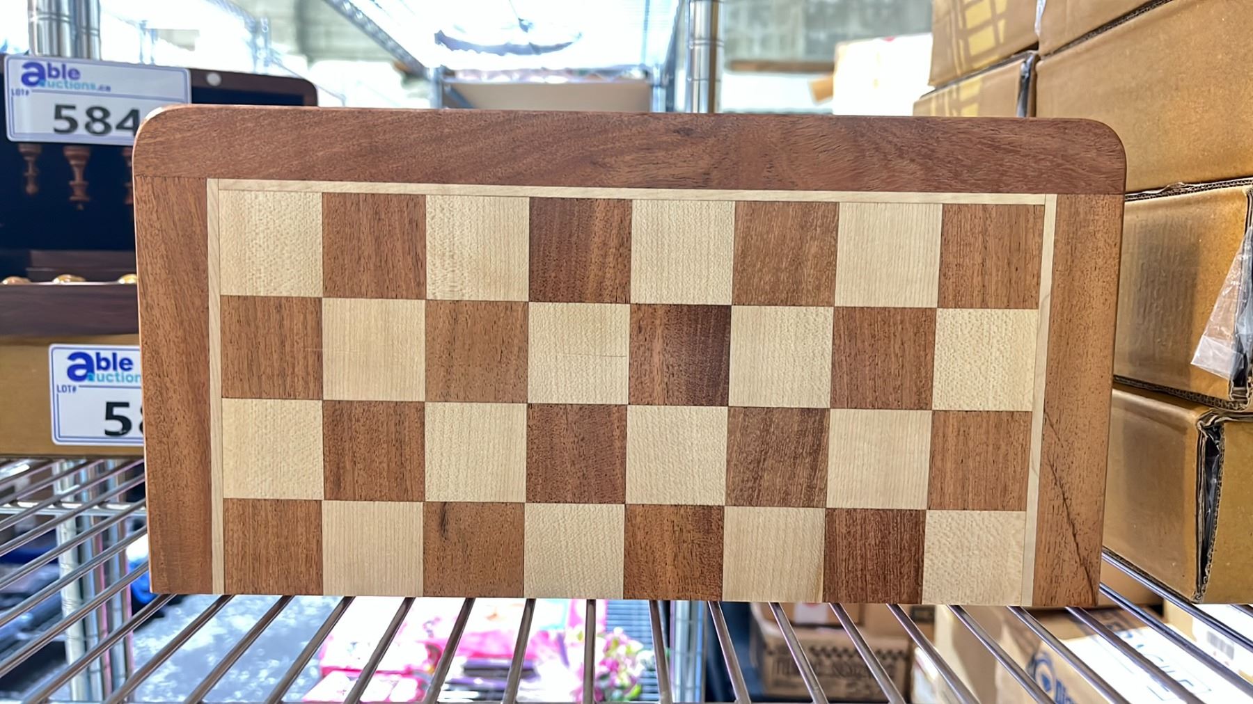 FOLDING WOODEN CHESS BOARD WITH CHESS PIECE STORAGE INSIDE