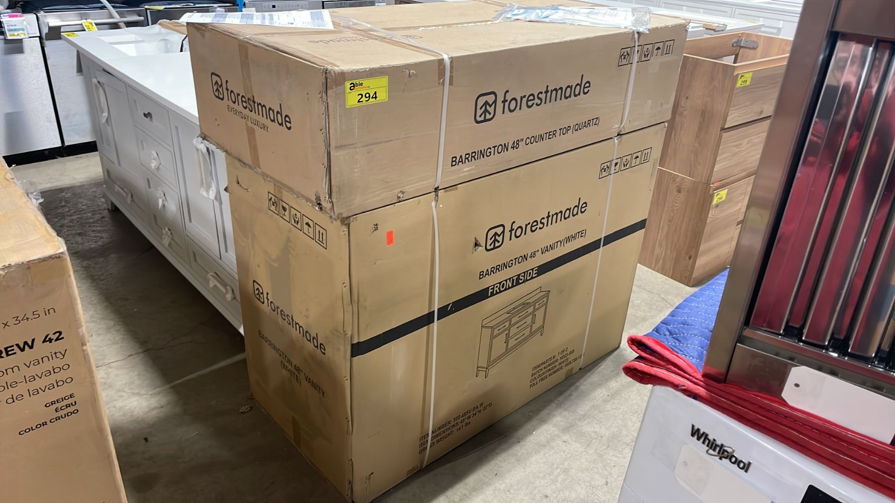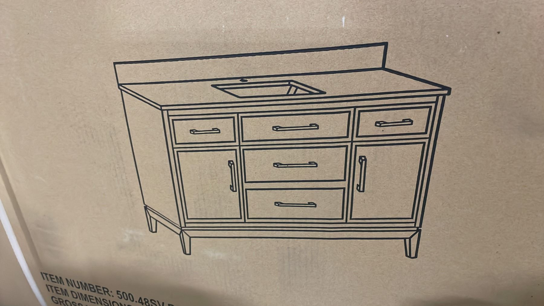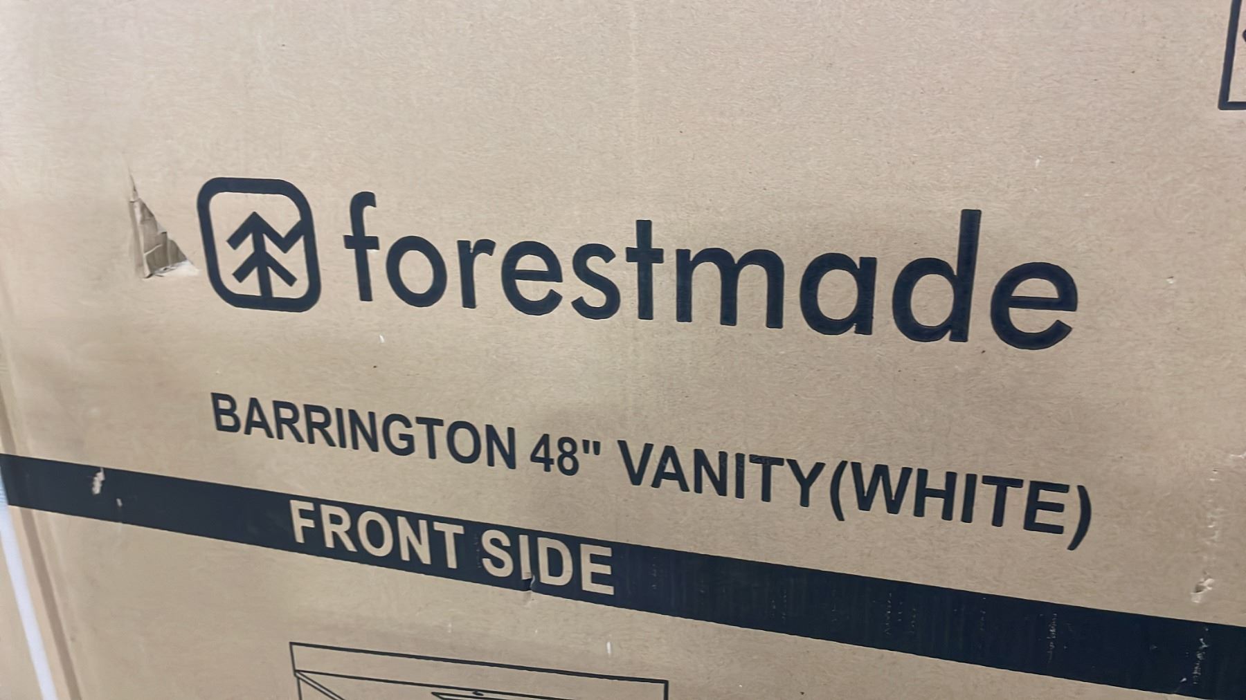 FORESTMADE MODEL BARRINGTON. WHITE QUARTZ TOP 48"W X 22"D WHITE 5 DRAWER 2 DOOR BATHROOM VANITY WITH SINK & BACKSPLASH *IN BOX*