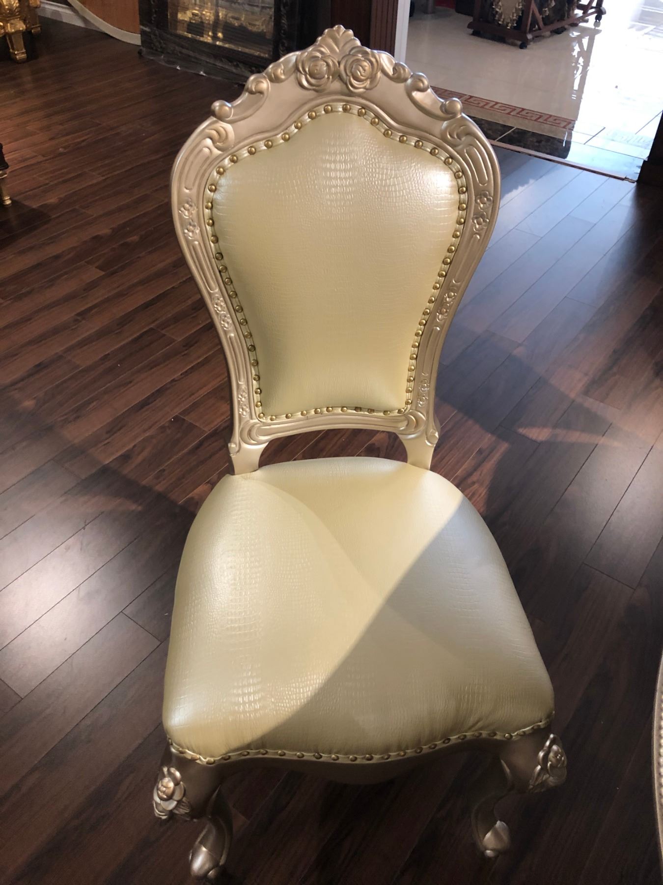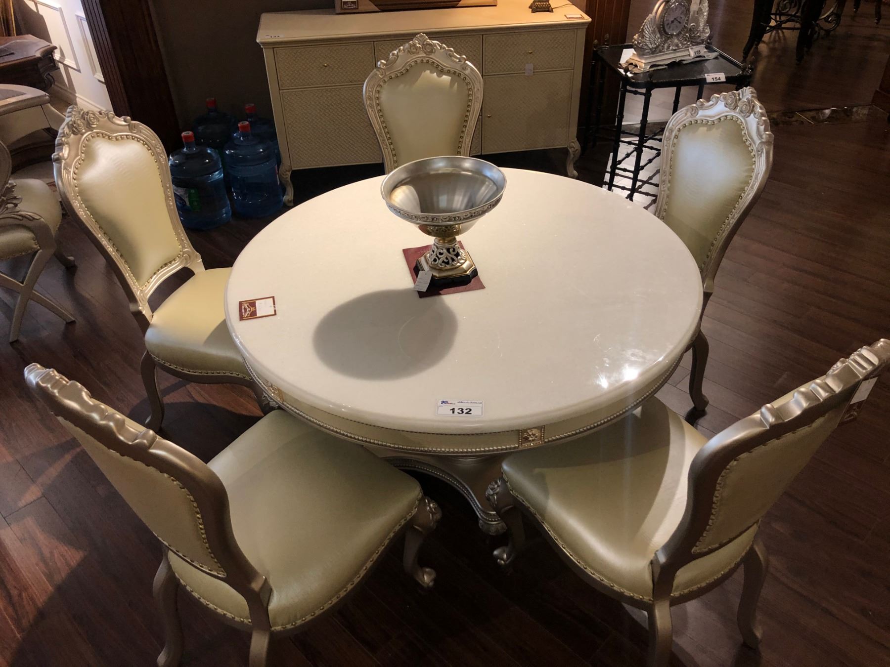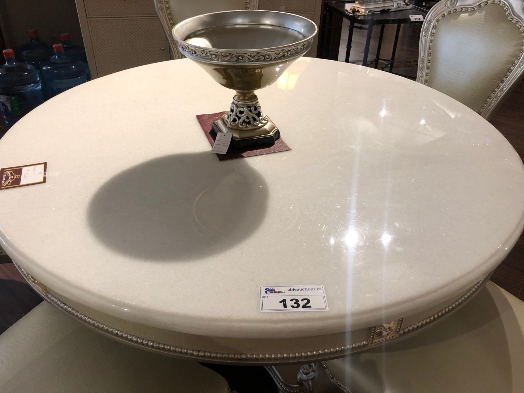 FORMAL DINING ROOM SET WITH ROUND MARBLE TOP TABLE AND FIVE CHAIRS. RETAIL $10,300.00