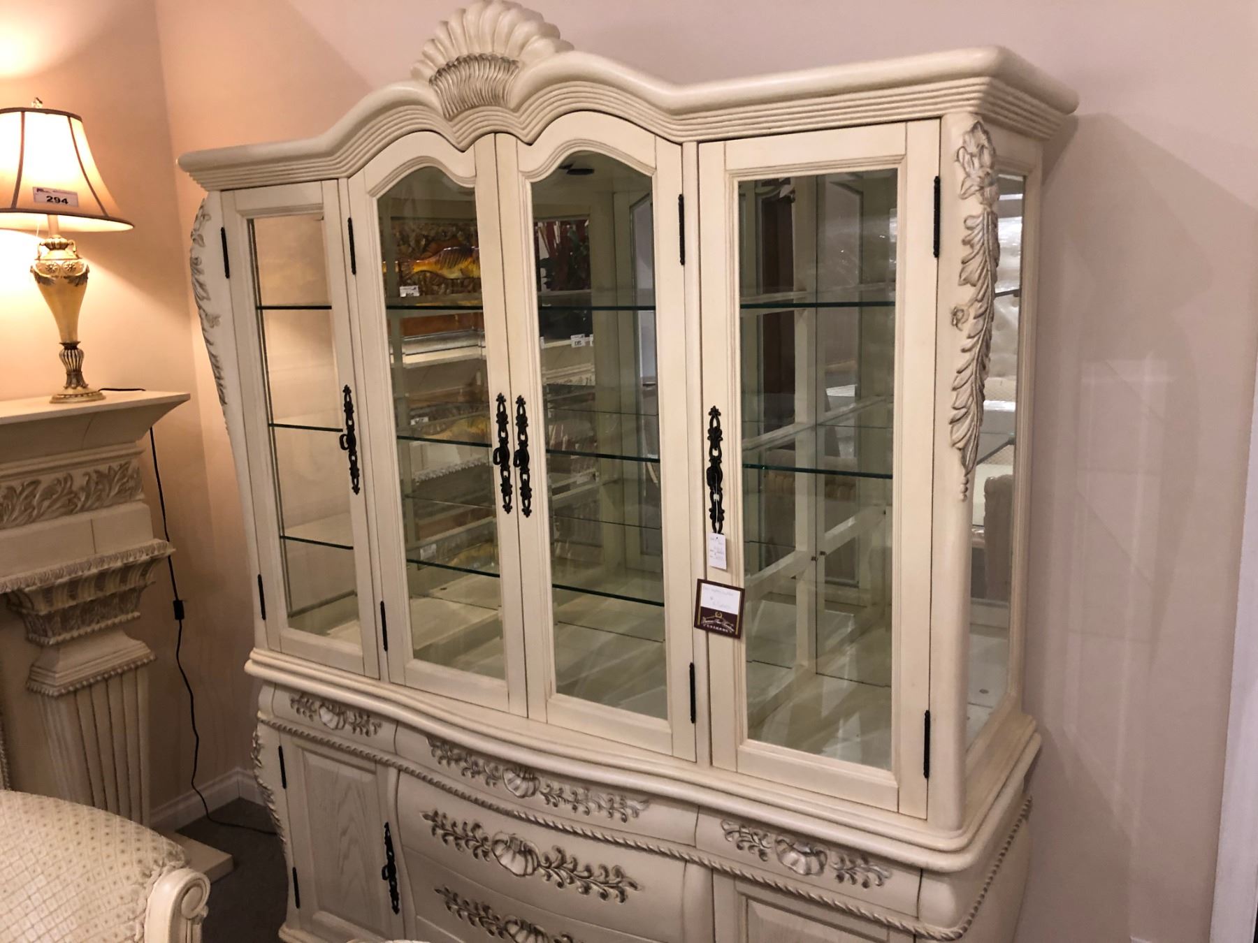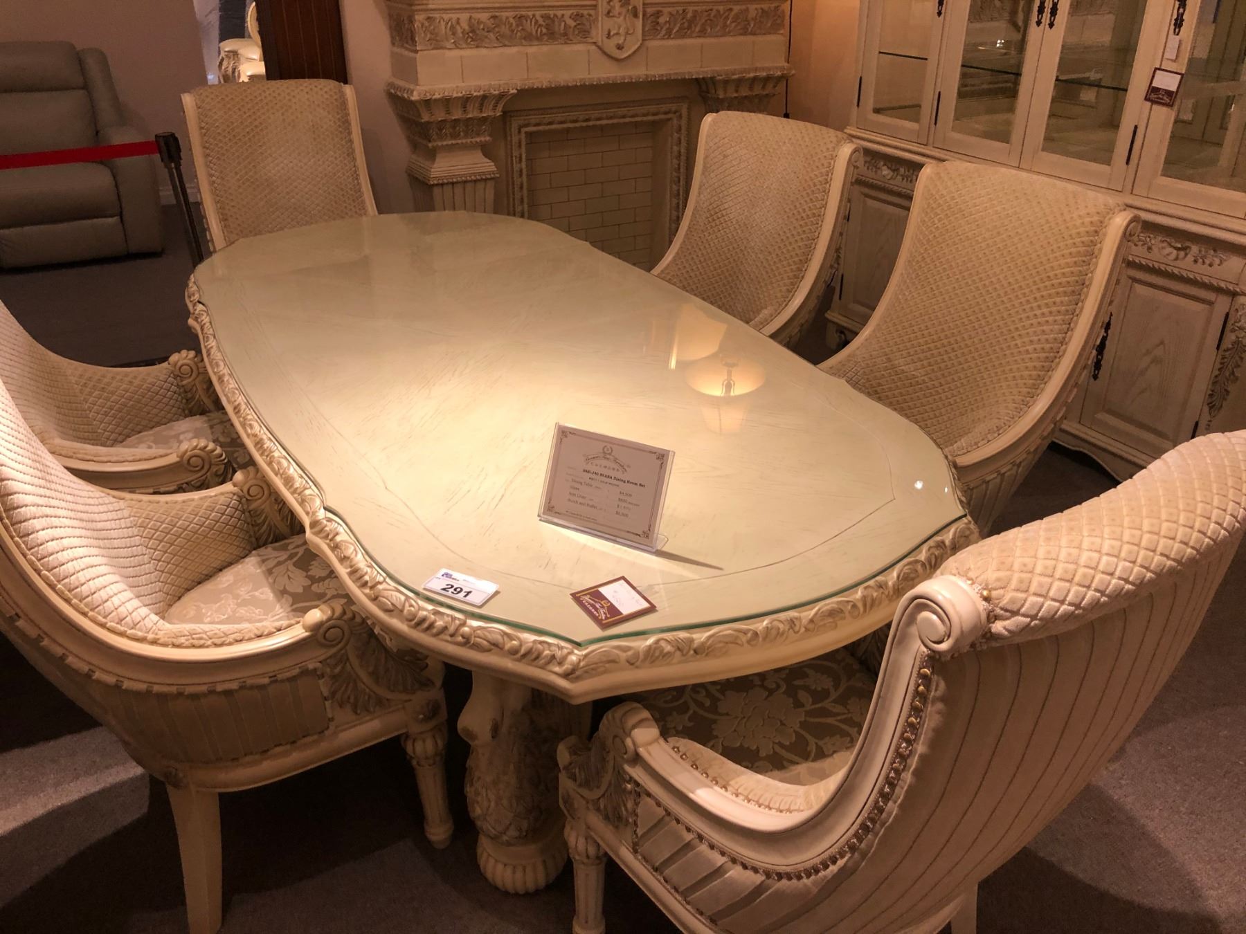 FORMAL DINING ROOM SET WITH SOLID WOOD TABLE, 6 CHAIRS AND BUFFET WITH HUTCH. TOTAL RETAIL VALUE $!8,000.00