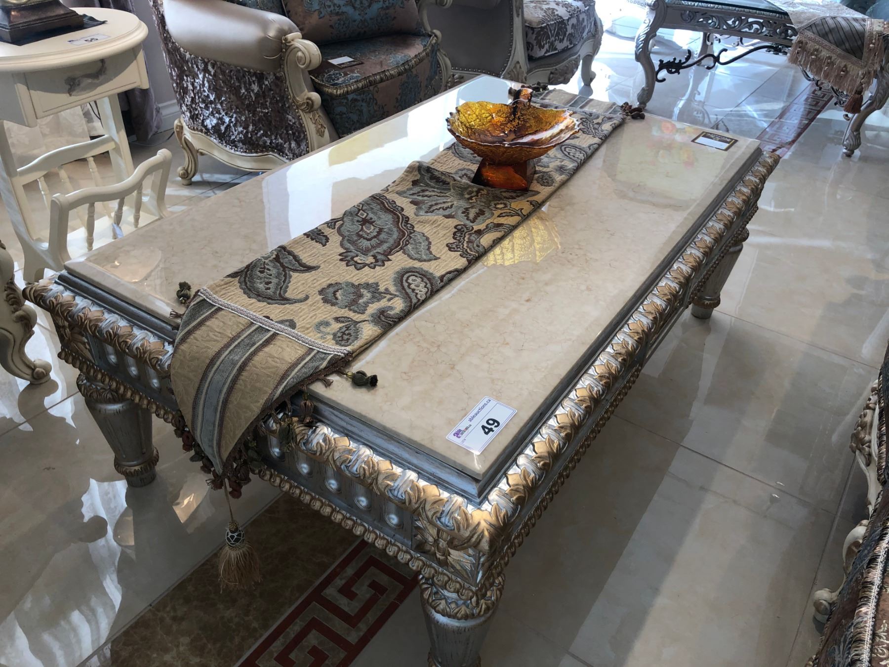 FORMAL STONE TOP TWO PC. COFFEE TABLE SET INC. COFFEE AND END TABLES. RETAIL $3,950.00