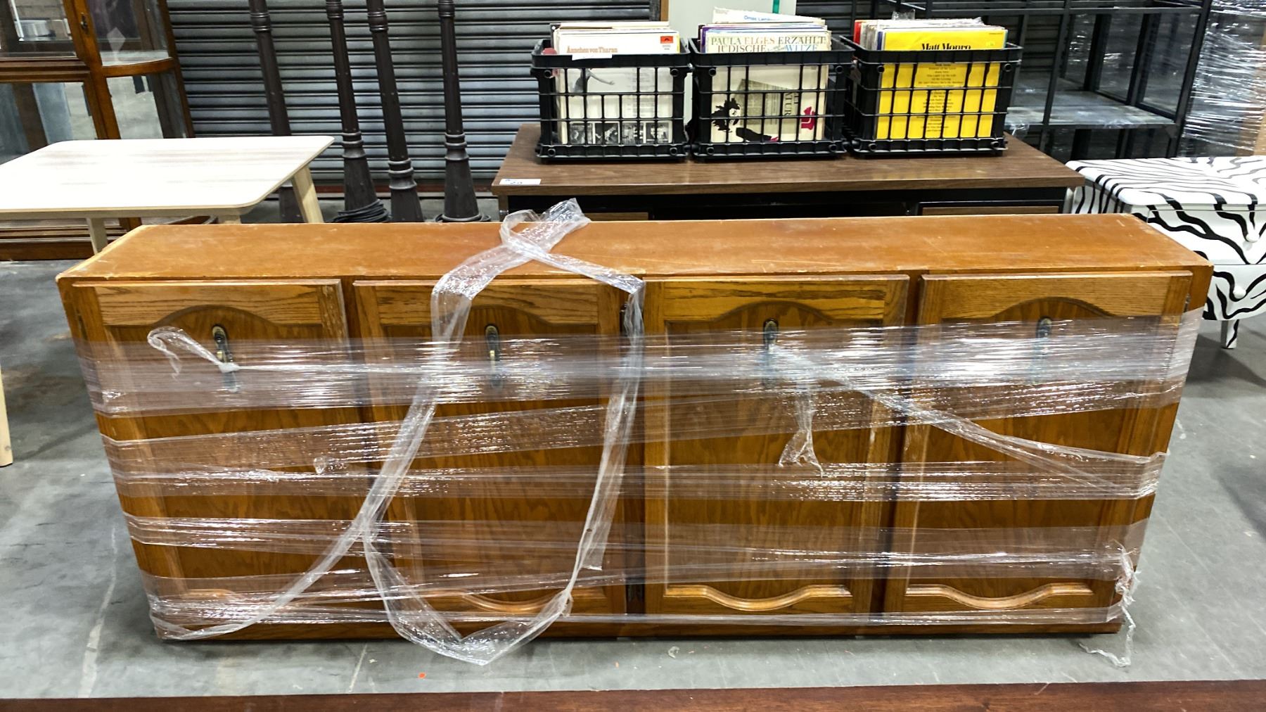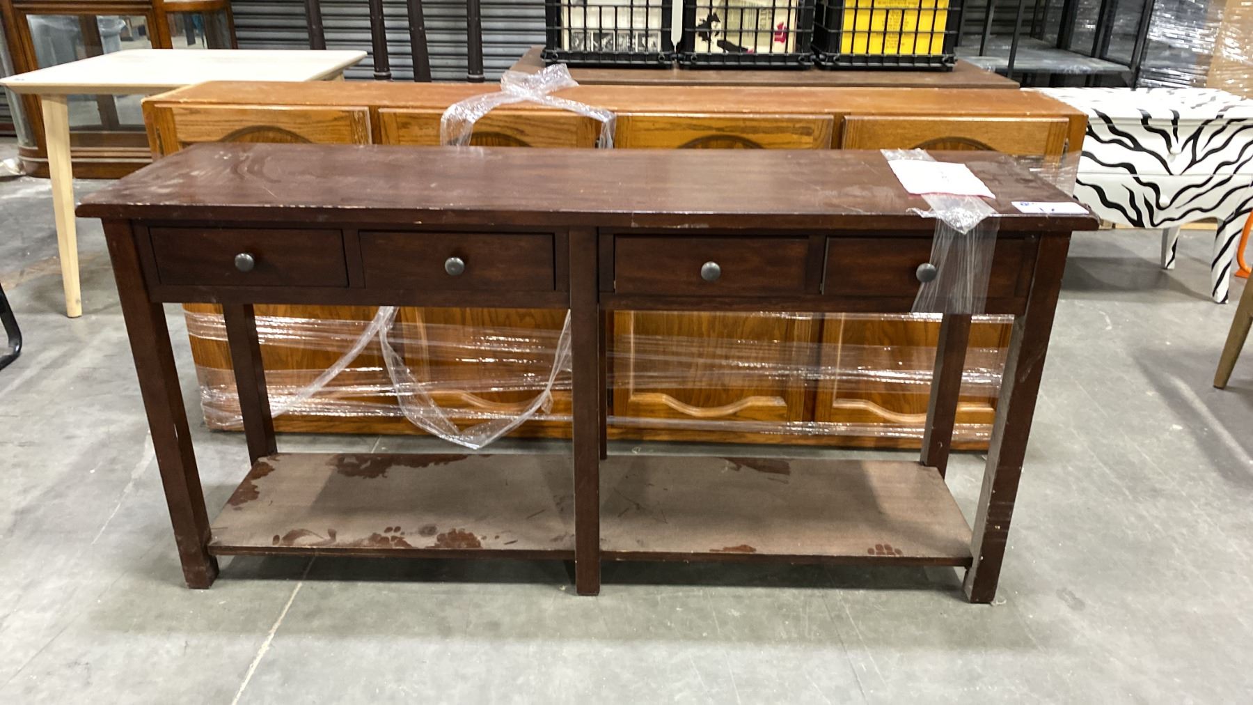 FOUR DOOR STORAGE CABINET - APPROX. 79"W X 13"D X 32"H & A FOUR DRAWER ENTRYWAY TABLE - APPROX. 62"W X 17"D X 30"H