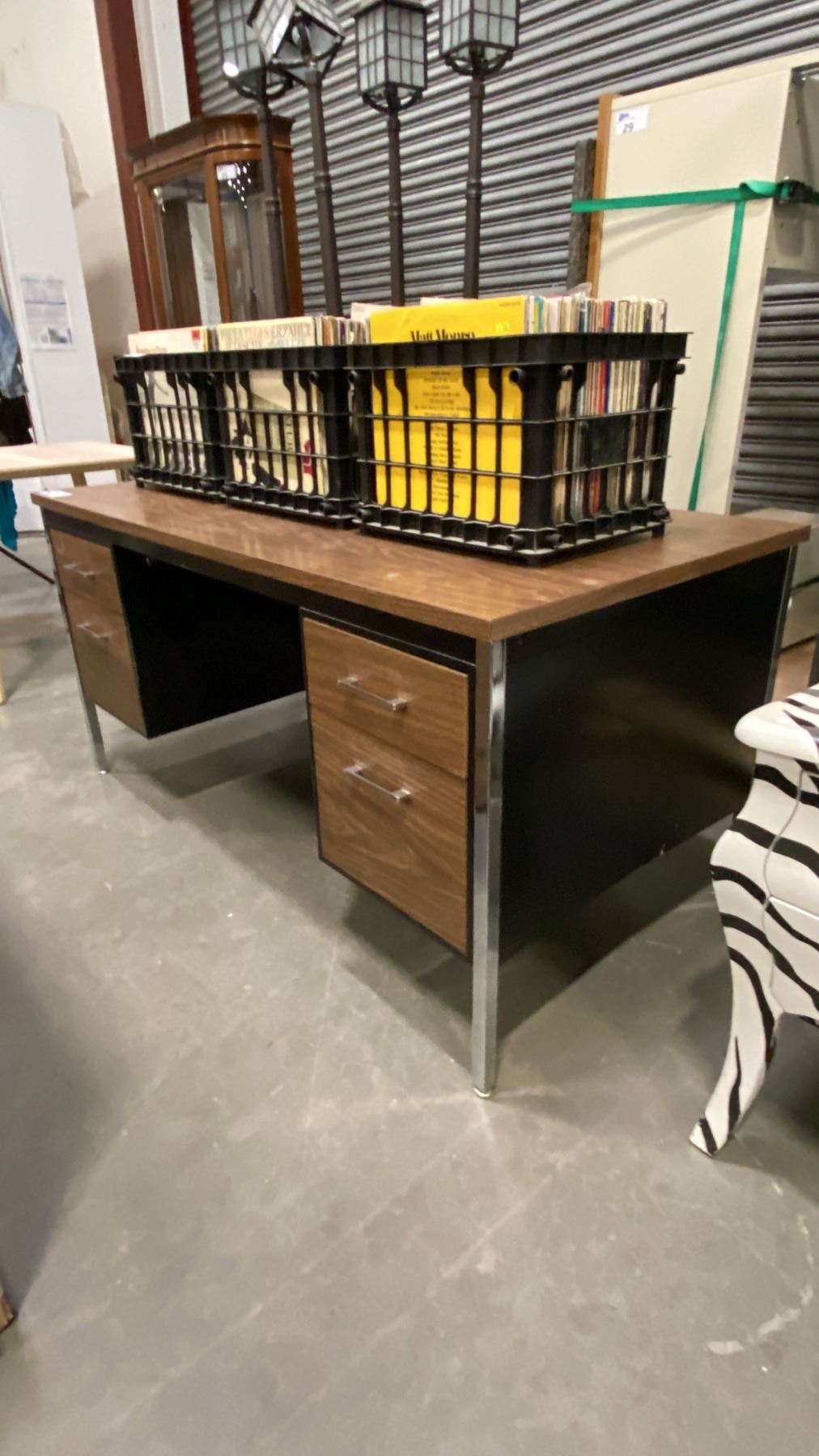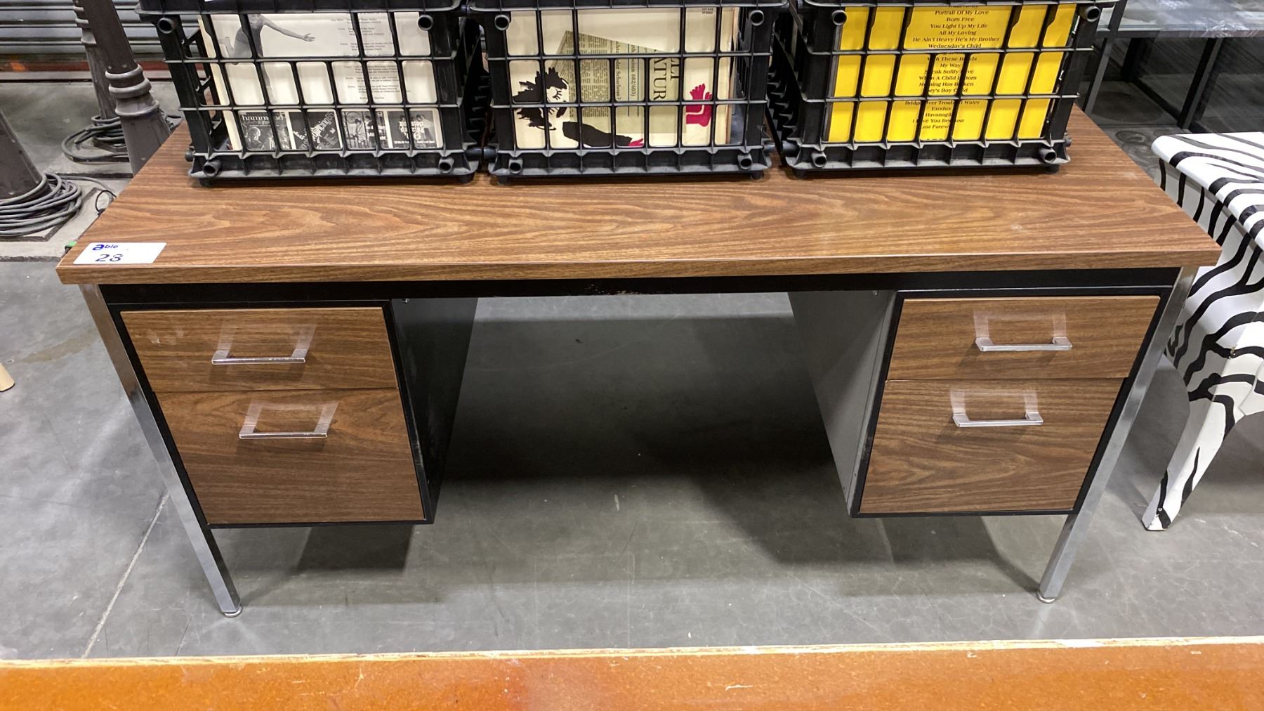 FOUR DRAWER WOODEN TOP/METAL LEG DESK - APPROX. 60"W X 30"D X 30"H