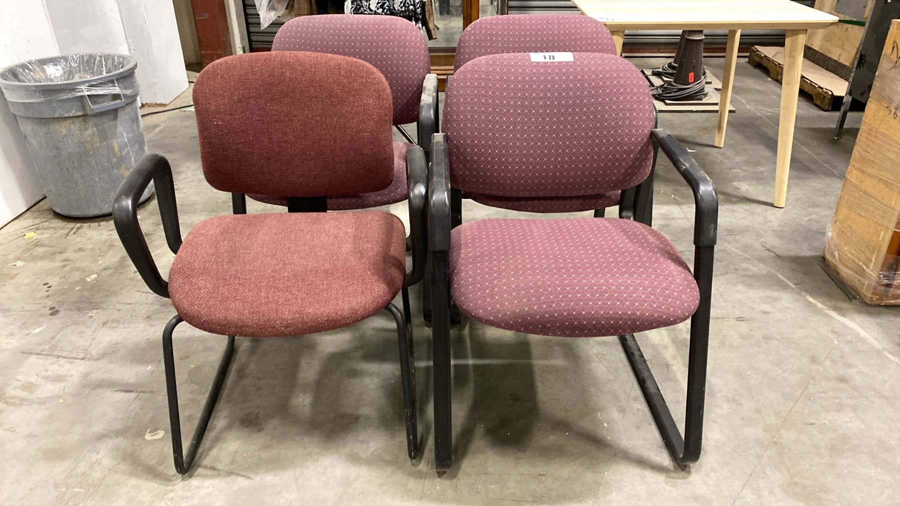 FOUR MAROON UPHOLSTERED CLIENT CHAIRS