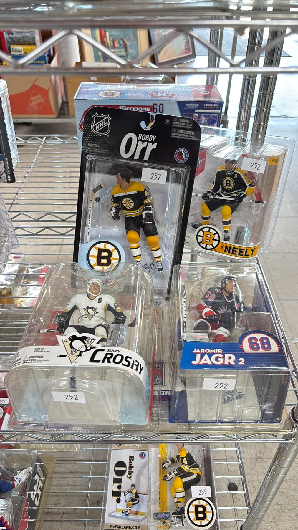FOUR NHL ACTION FIGURES - BOBBY ORR, CAM NEELY, SIDNEY CROSBY & JAROMIR JAGR