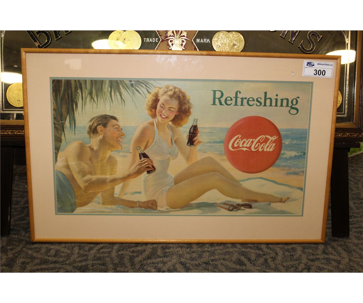 FRAMED 1940'S COKE CARDBOARD SIGN