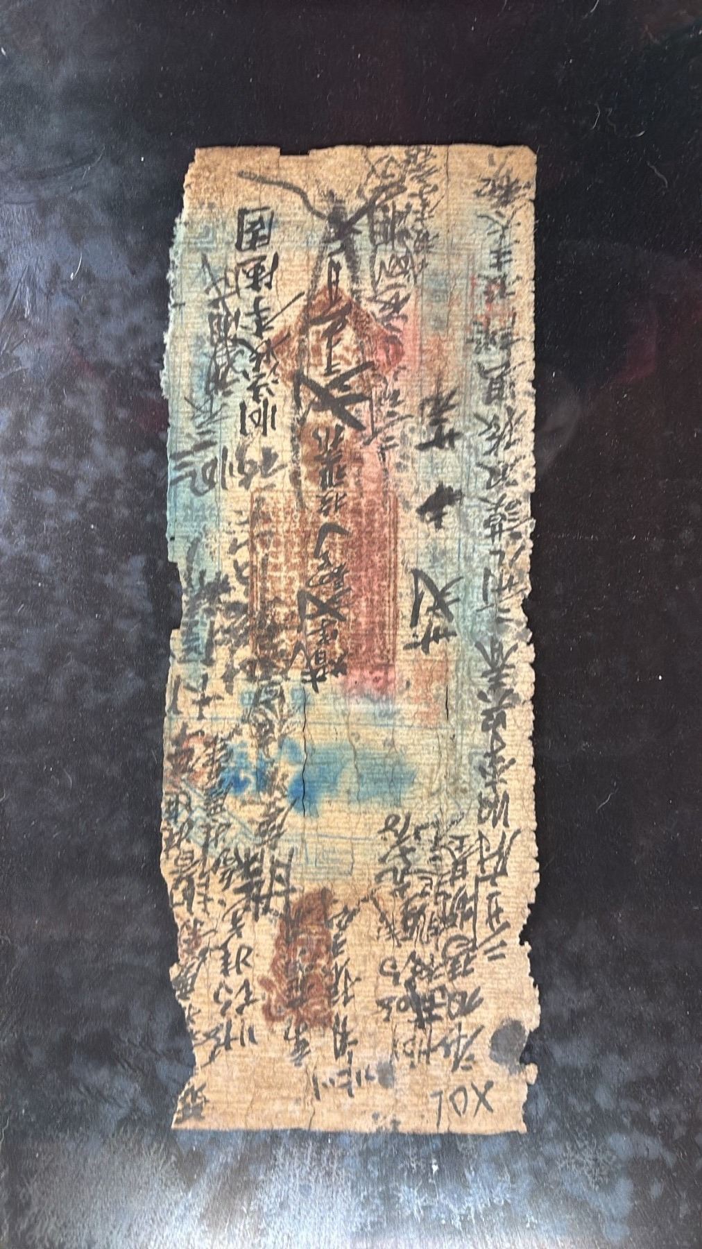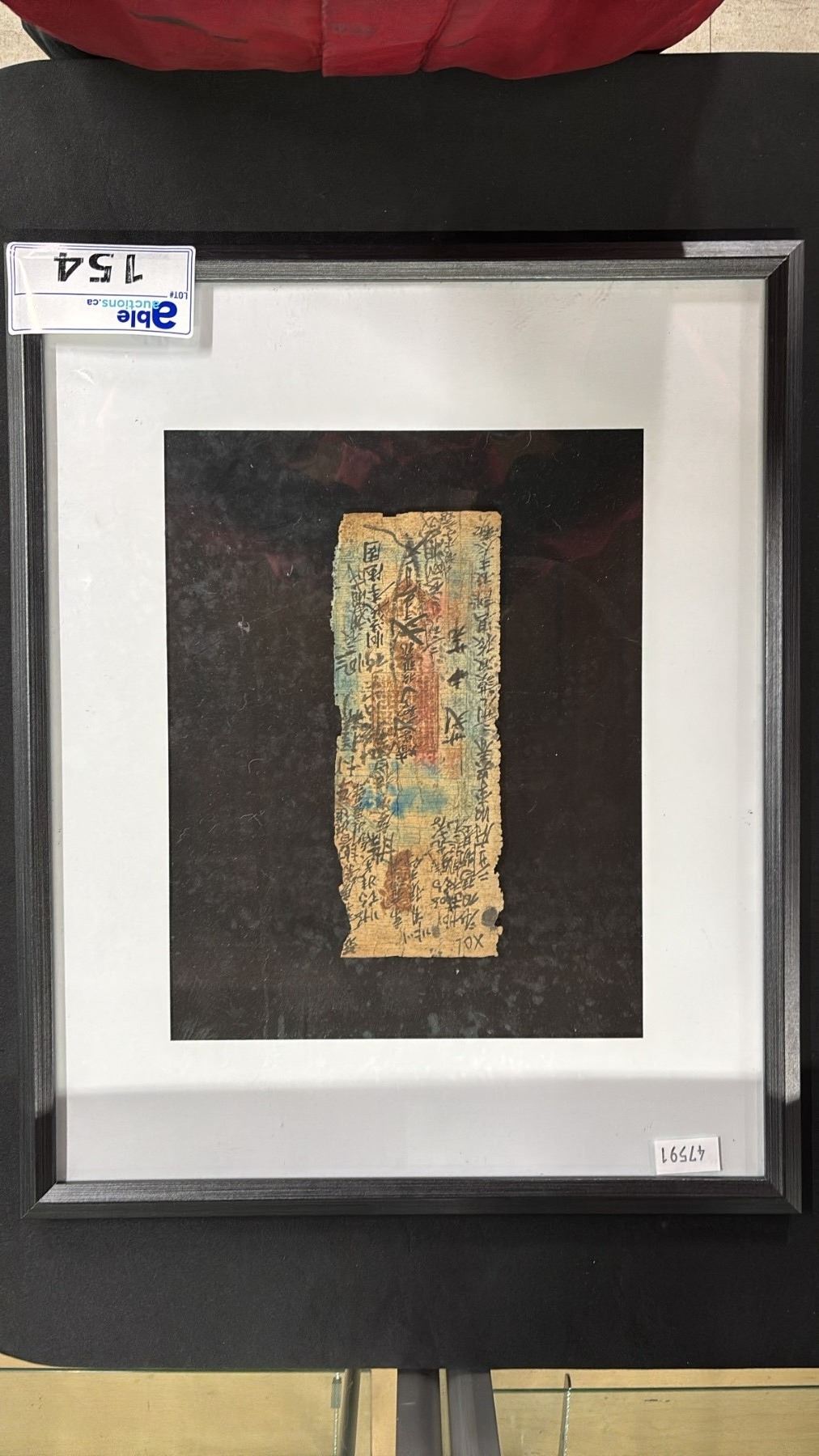 FRAMED ANTIQUE CHINESE PAPER MONEY ARTIFACT 17" X 21"