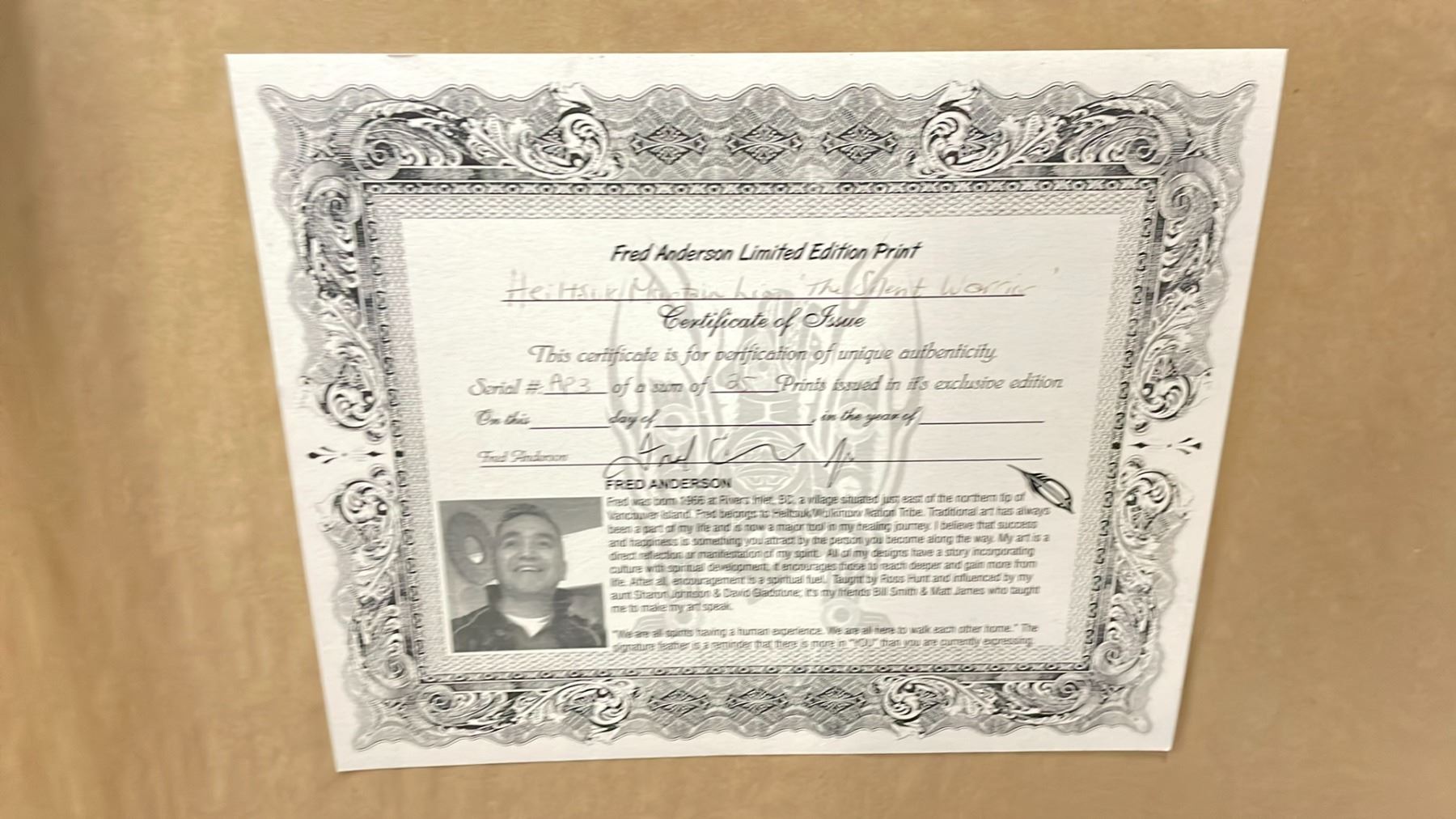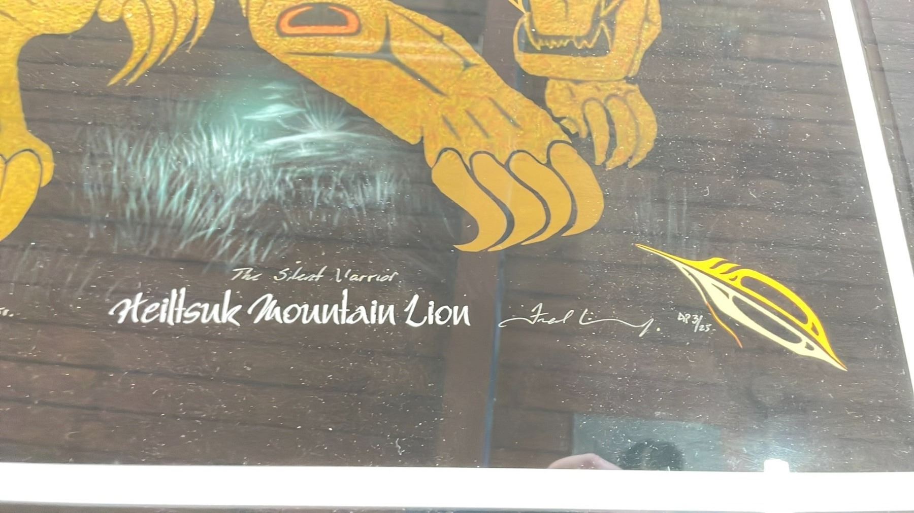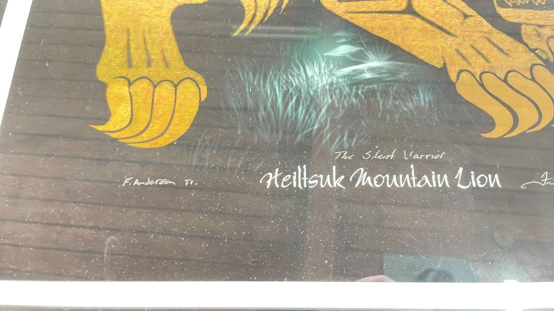 FRAMED ARTIST PRINT (AP3/25) BY FRED ANDERSON JR. TITLED "HIELTSUK MOUNTAIN LION 'THE SILENT WARRIOR'" 28.5" X 34.5"