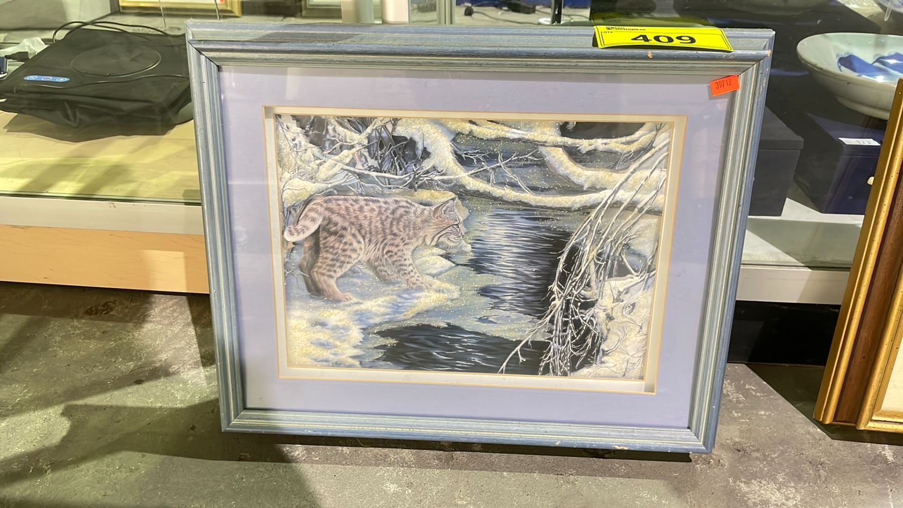 FRAMED ARTIST SIGNED BOBCAT 3D ARTWORK 19" X 15"