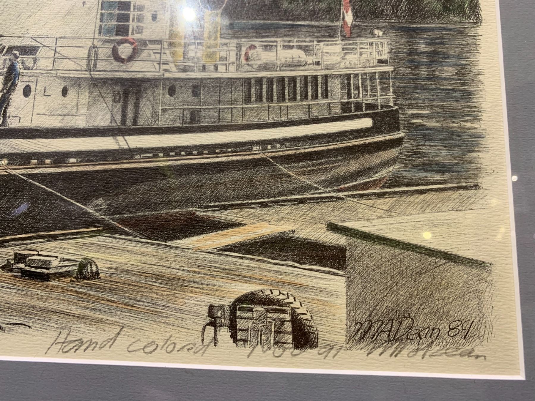 FRAMED ARTIST SIGNED PENCIL ON PAPER TITLED "MCBRIDE BAY WOOTKA ISLAND" APPROX 26.5" X 21"