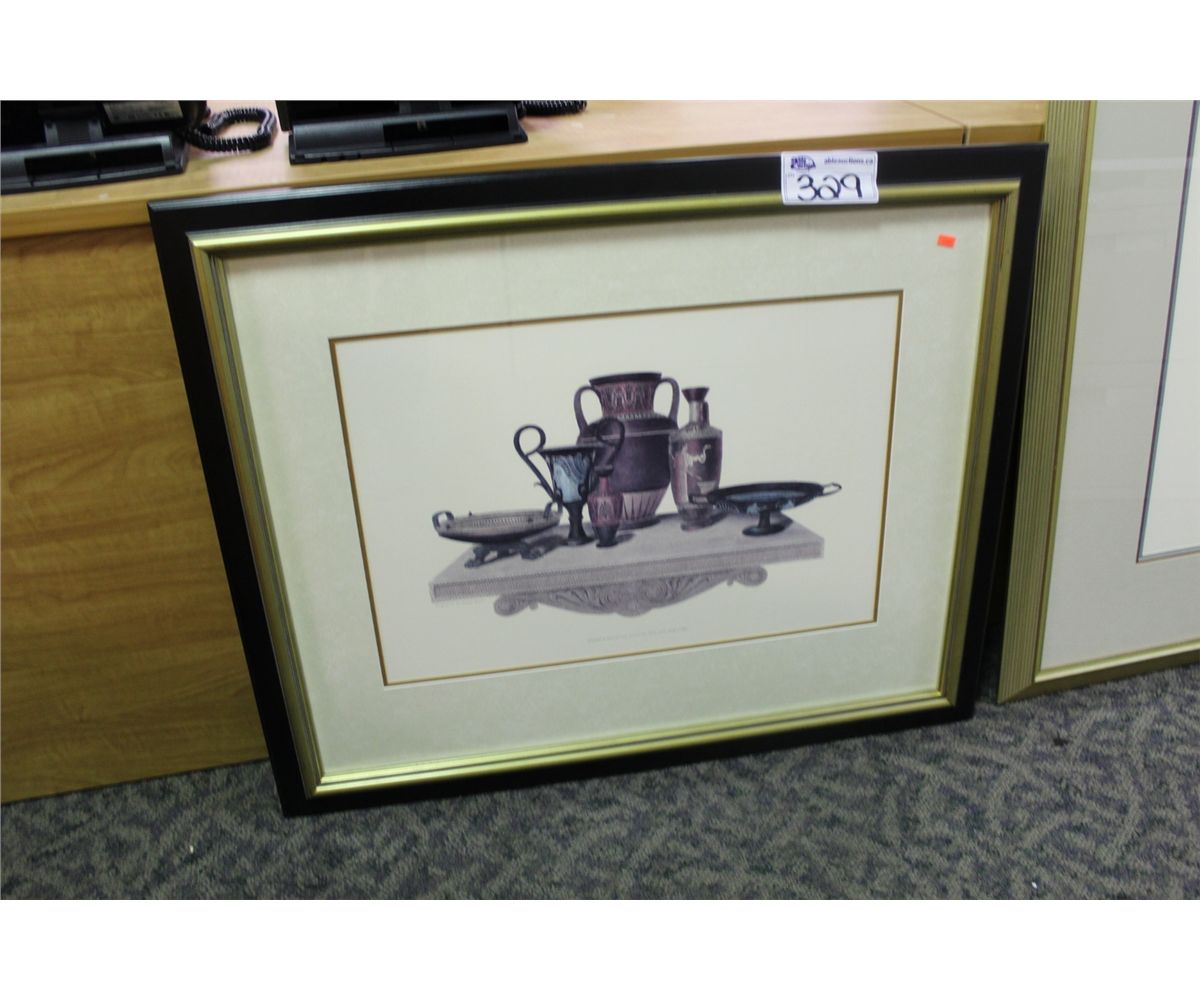 FRAMED ARTWORK FEATURING A COLLECTION OF URNS