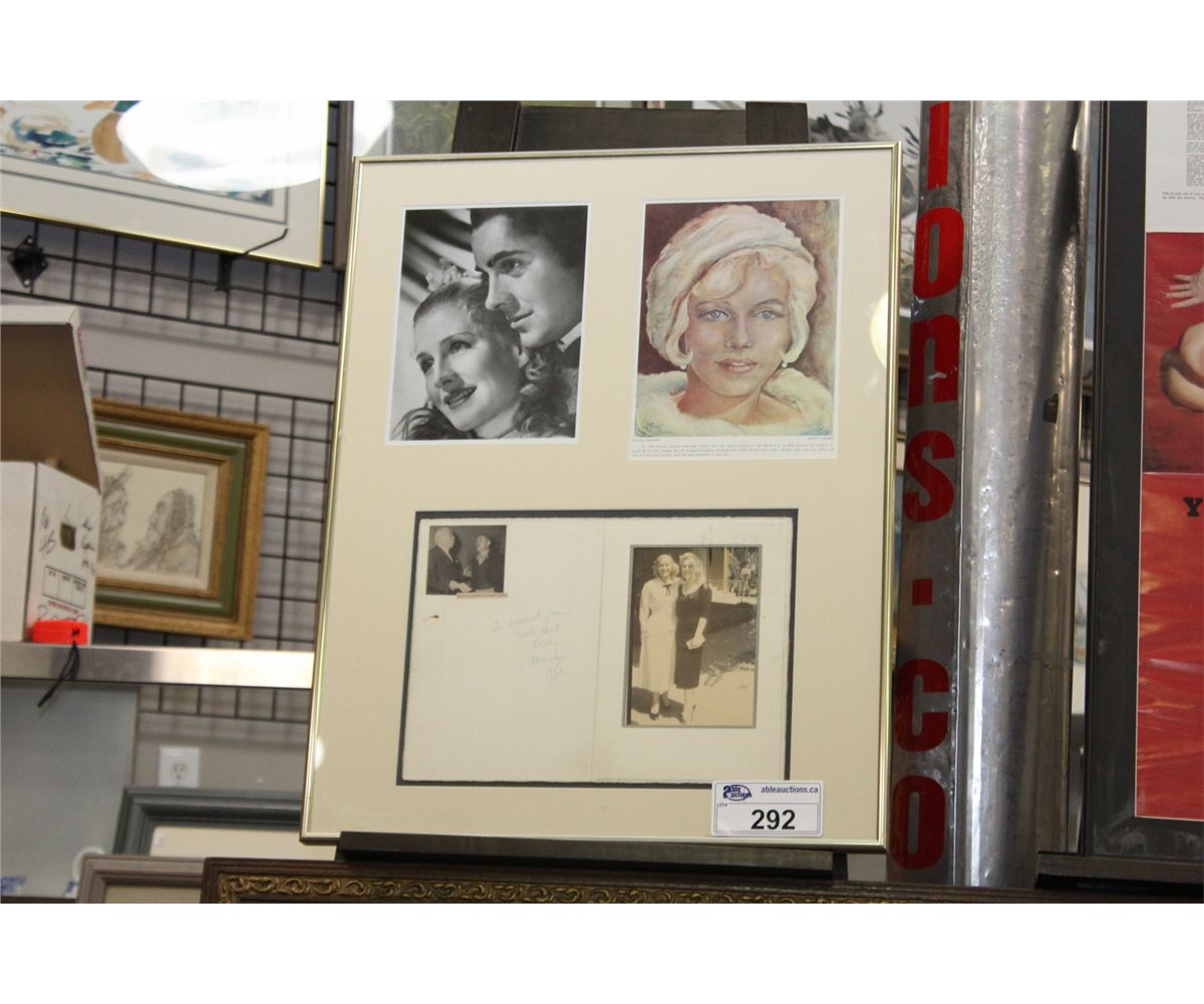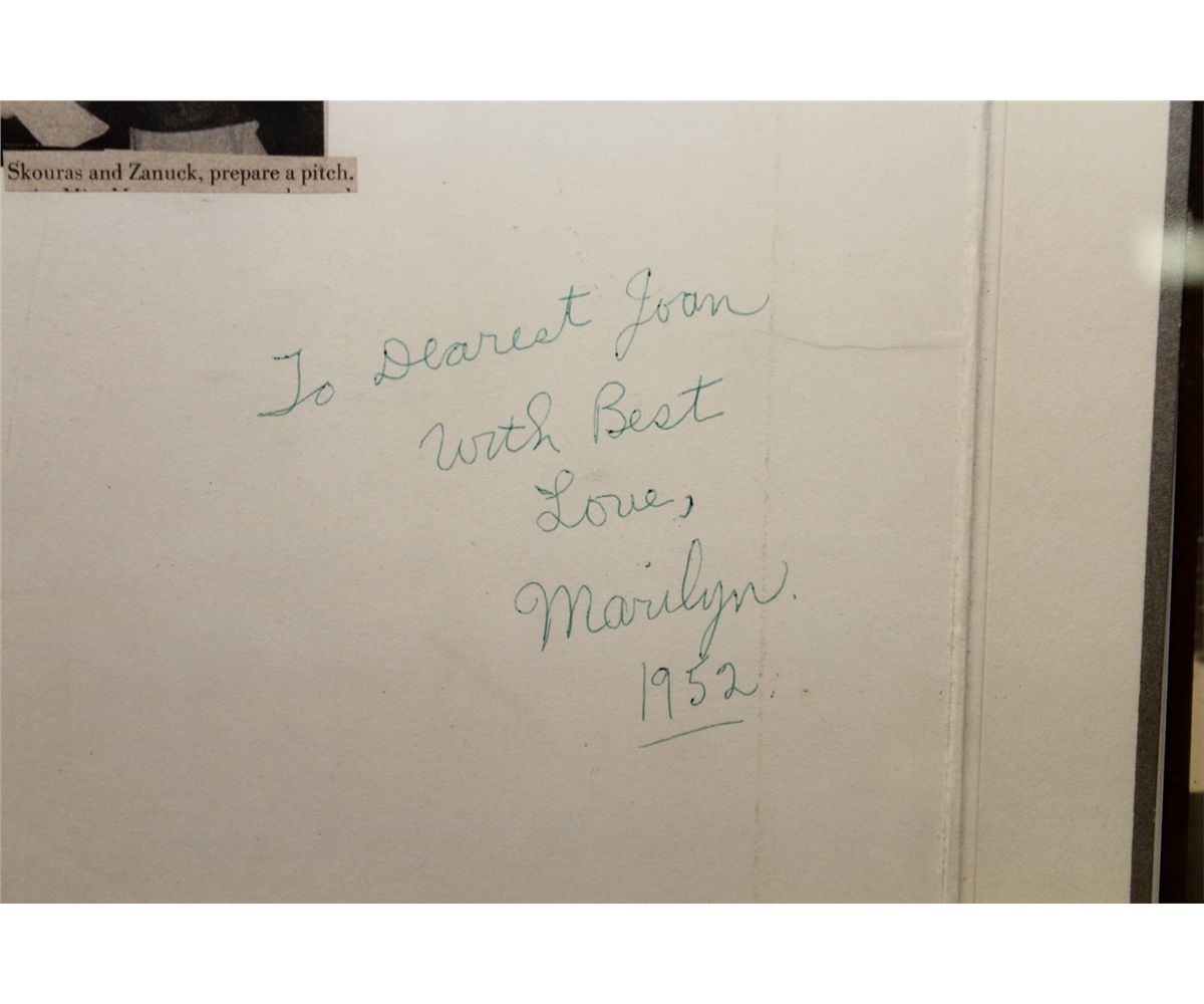 FRAMED AUTHENTIC PHOTO OF MARILYN MONROE WITH NOTE TO HER FRIEND JOAN