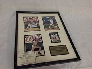 FRAMED BASEBALL MONTAGE FEATURING A SINGLE CARD SIGNED BY: MARK MCGWIRE, JOSE CANSECO AND WALT WEISS.  A PHOTO OF EACH AND C.O.A.  LIMITED EDITION # 139/195