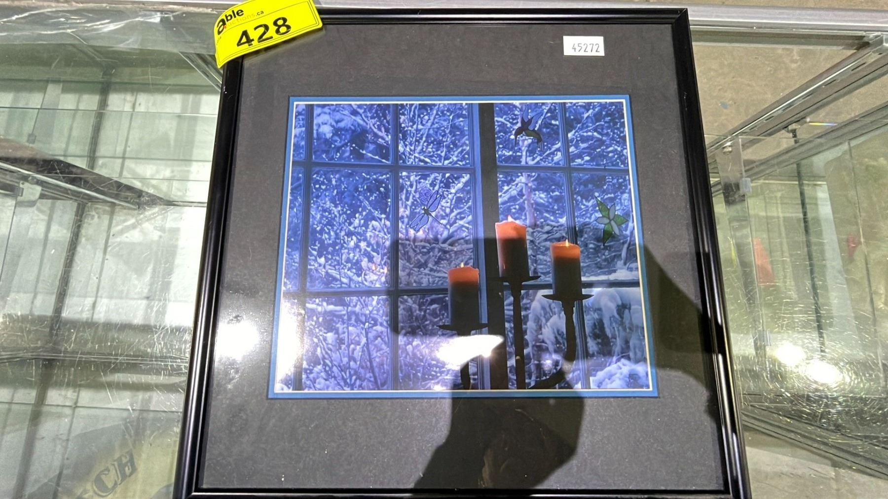 FRAMED CANDLE PICTURE APPROX 16.5X16.5"