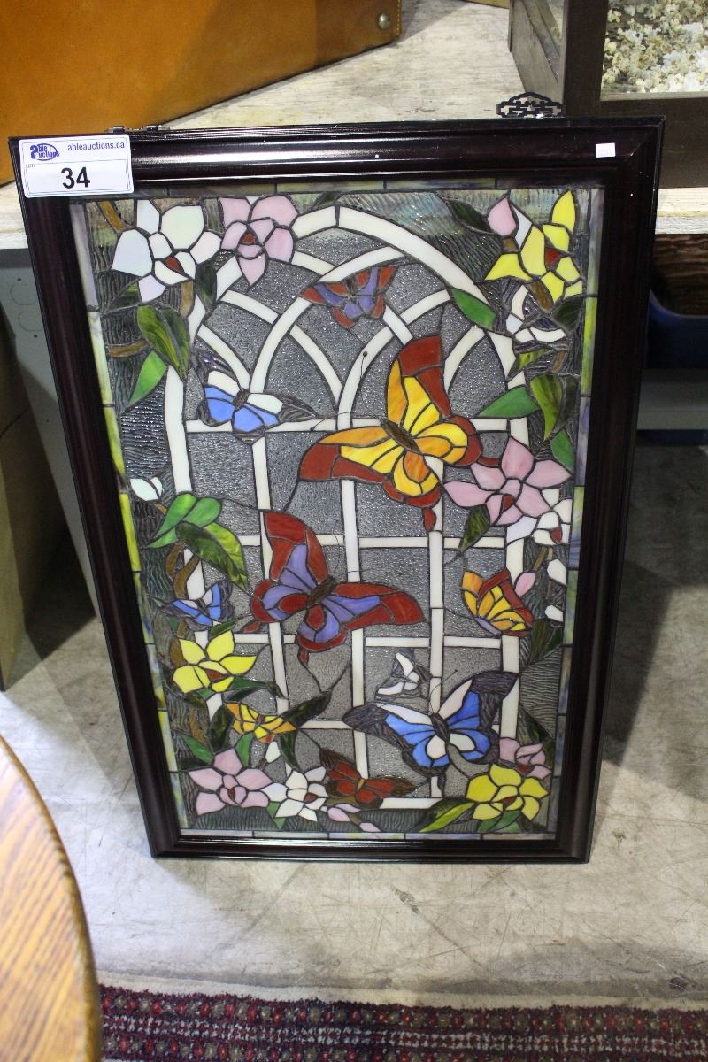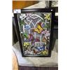 FRAMED DECORATIVE LEADED STAINED GLASS WINDOW PANEL
