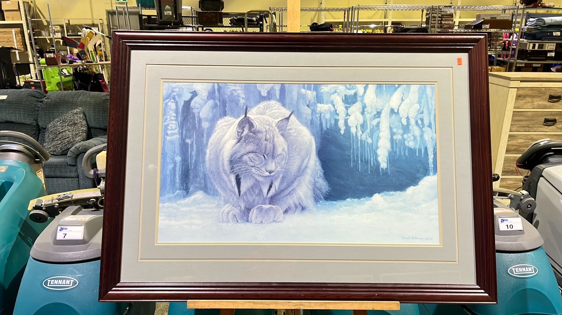 FRAMED "DOZING LYNX " ROBERT BATEMAN 1987 APPROX 29.5X42"