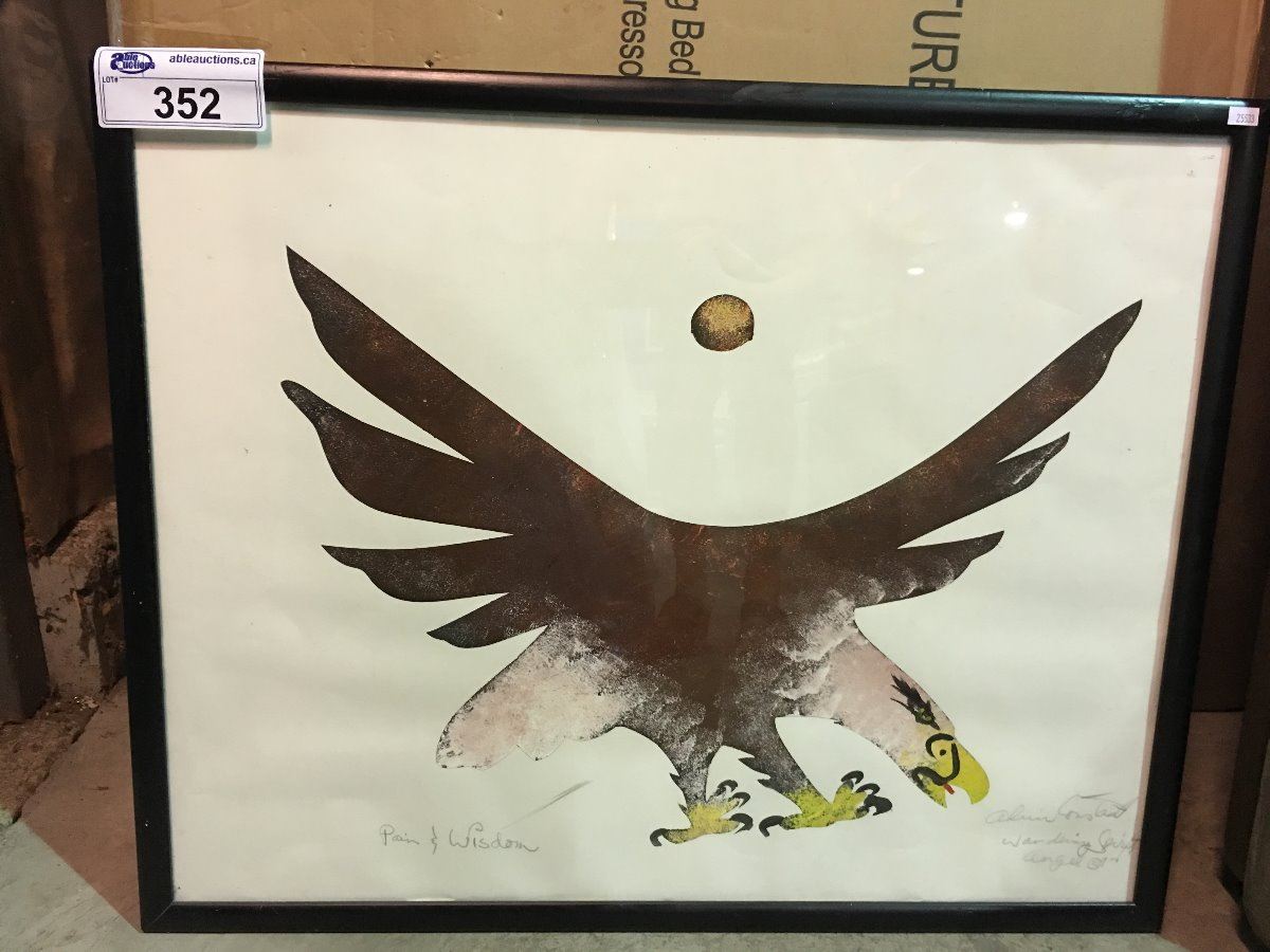 FRAMED EAGLE PRINT TITLED "PAIN & WISDOM" SIGNED BY ARTIST BOTTOM RIGHT CORNER
