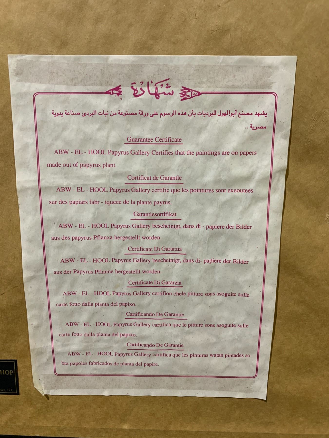 FRAMED EGYPTIAN STYLE PAPYRUS