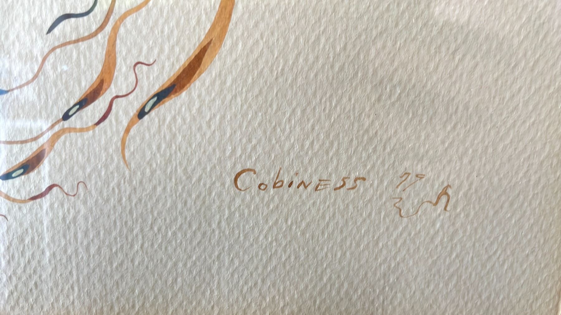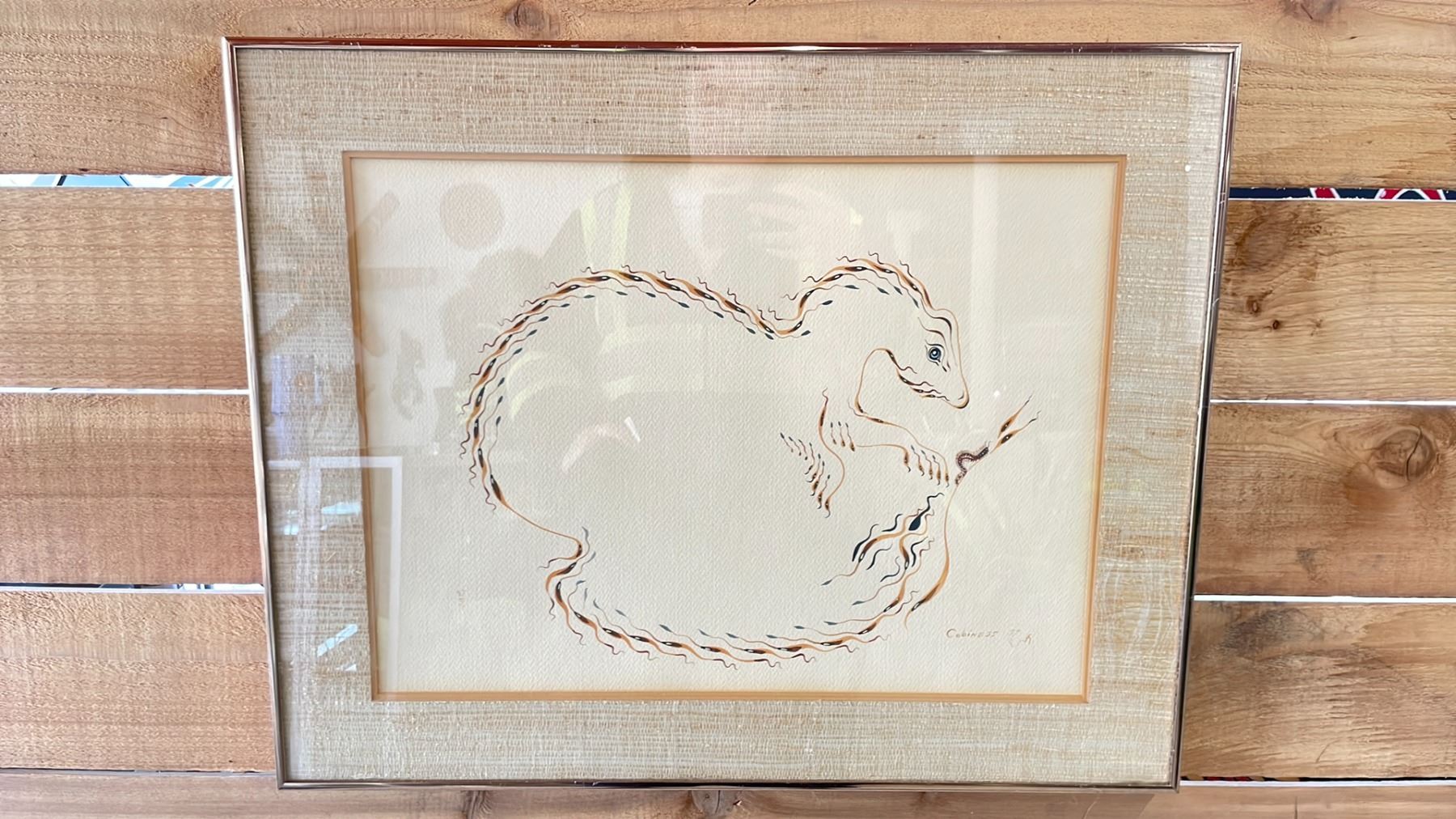 FRAMED FIRST NATIONS ACRYLIC ON PAPER BY EDDY COBINESS 25" X 20"