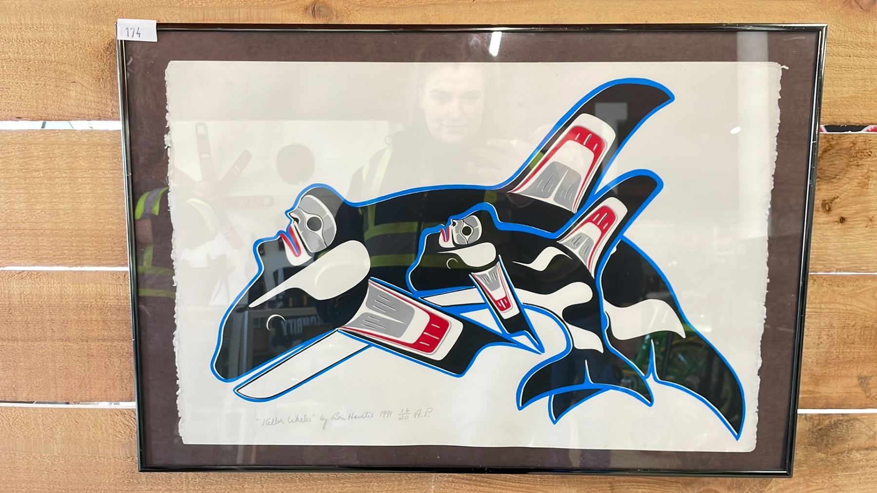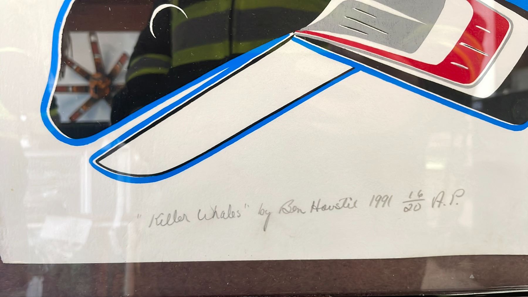 FRAMED FIRST NATIONS AP (16/20) BY BEN HOUSTIE TITLED "KILLER WHALE" 25" X 17"