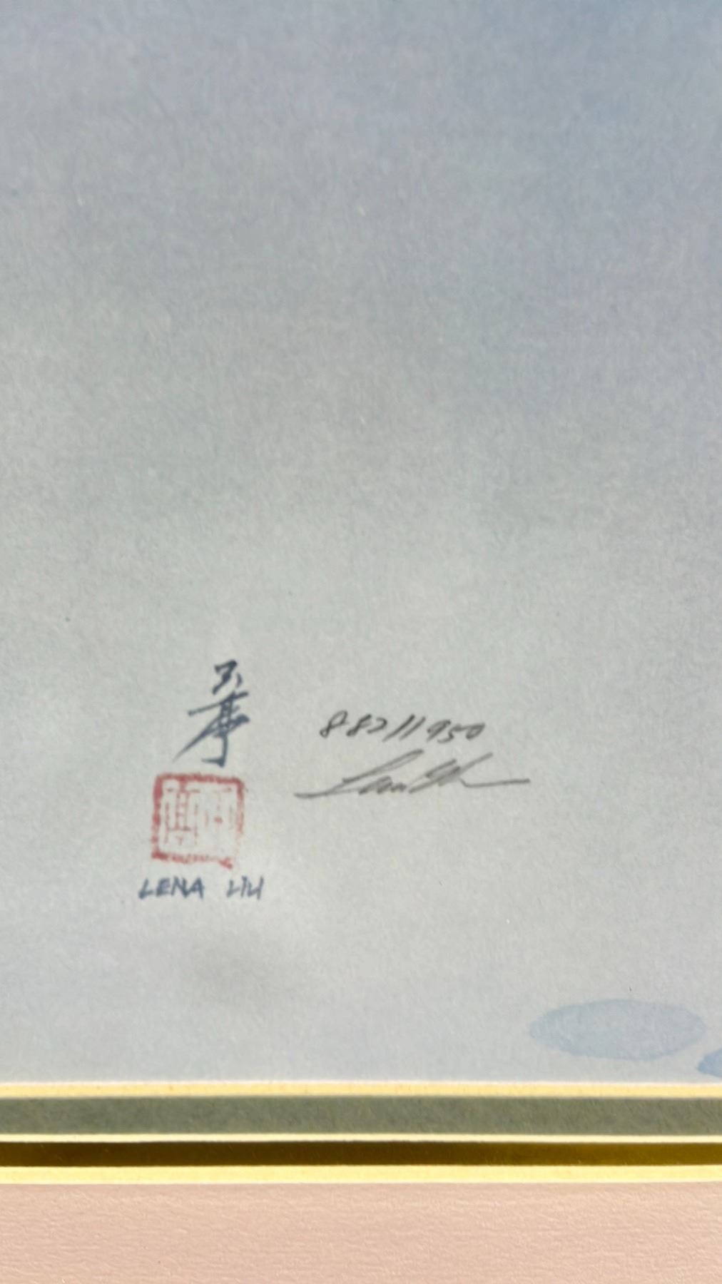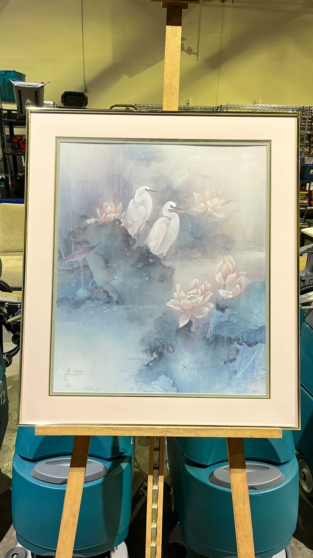 FRAMED HERONS AND FLOWERS SIGNED BY LENA LIU 882//950 APPROX 29.5X26"