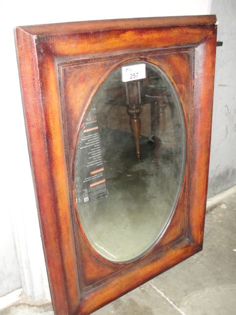 FRAMED LEATHER LOOK DECORATIVE HANGING WALL MIRROR