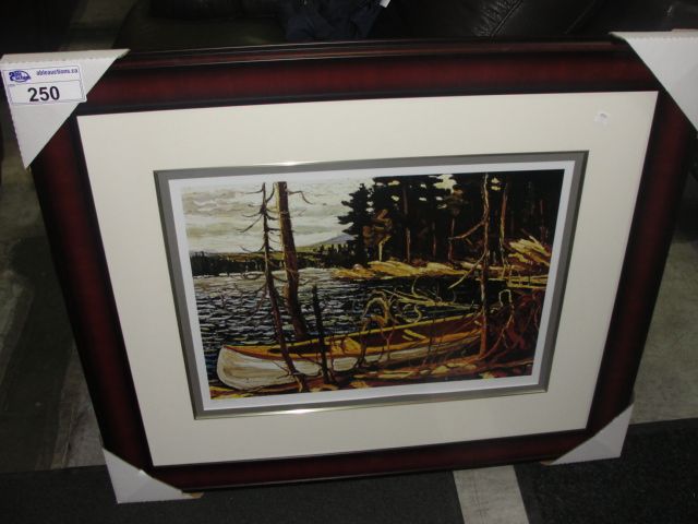 FRAMED LIMITED EDITION 1410/1750 GROUP OF SEVEN PRINT TITLED "THE CANOE 1912" BY ARTISTTOM THOMPSON