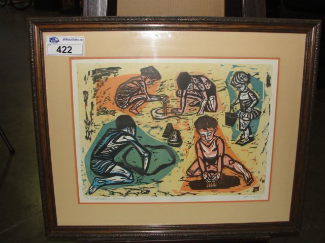 FRAMED LIMITED EDITION ORIGINAL COLOURED WOOD CUT SIGNED AND NUMBERED PRINT WITH CERTIFICATE OF AUTHENTICITY ON BACK