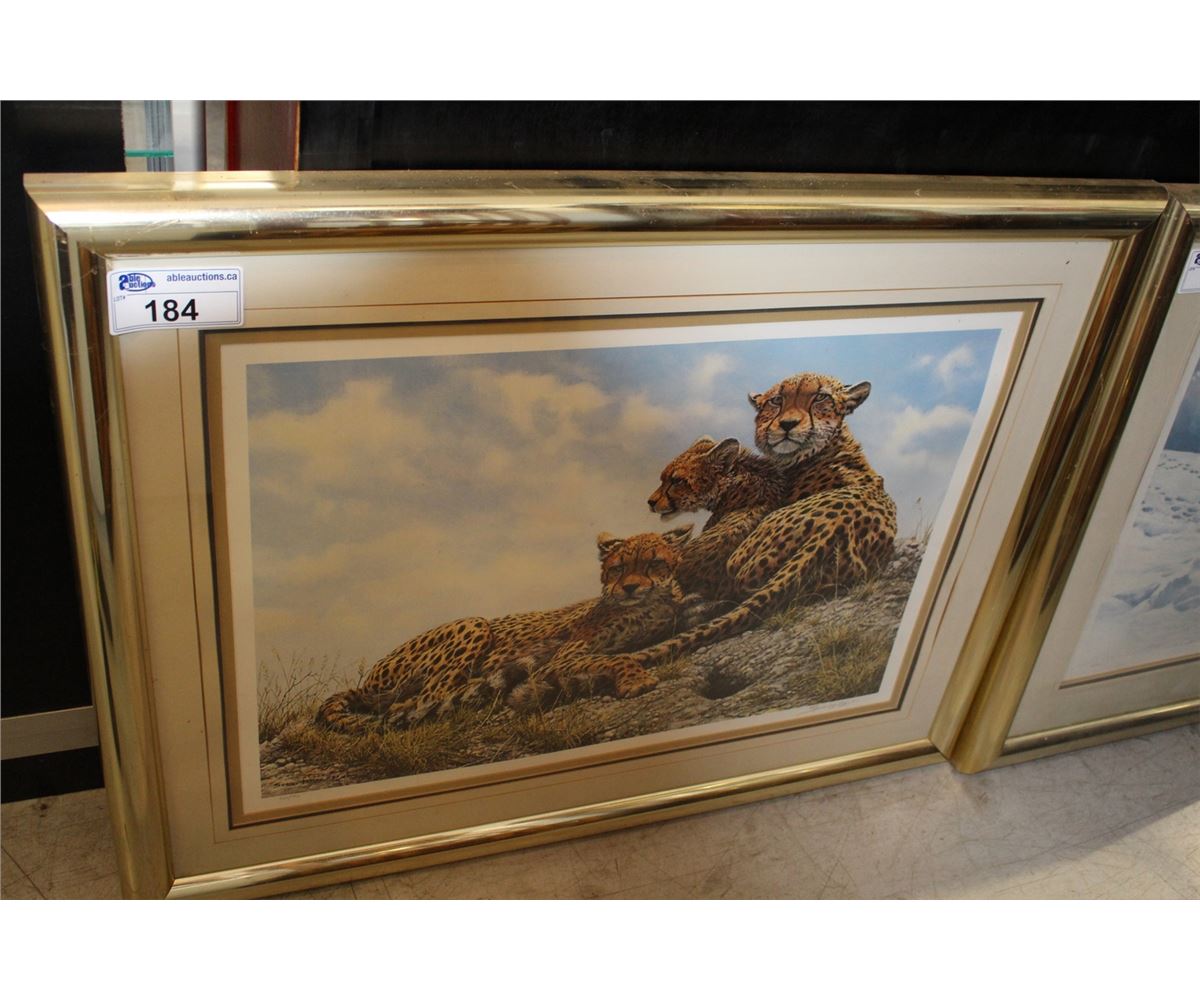 FRAMED LIMITED EDITION SEEREY LESTER PRINT, SIGNED AND NUMBERED - LEOPARD FAMILY
