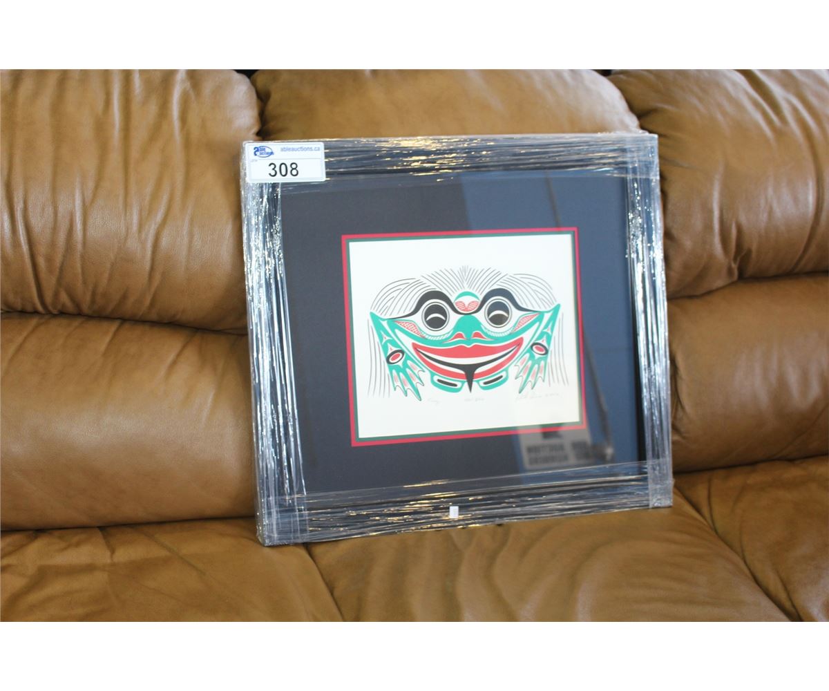 FRAMED LIMITED EDITION SIGNED AND NUMBERED WEST COAST NATIVE PRINT TITLED FROG