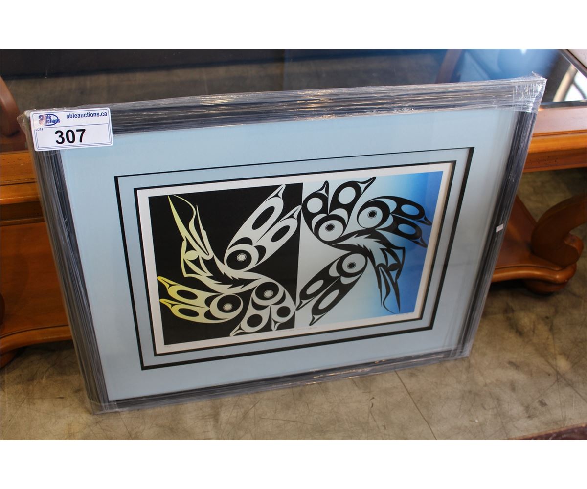 FRAMED LIMITED EDITION SIGNED AND NUMBERED WEST COAST NATIVE PRINT TITLED SWUN CELE HUMMINGBIRDS