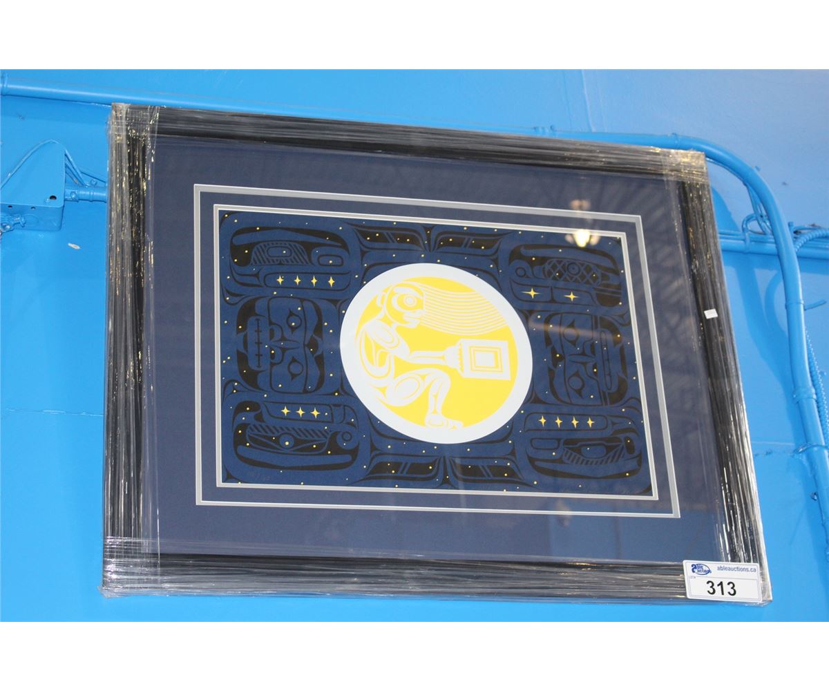 FRAMED LIMITED EDITION SIGNED AND NUMBERED WEST COAST NATIVE PRINT TITLED THE BOY IN THE MOON