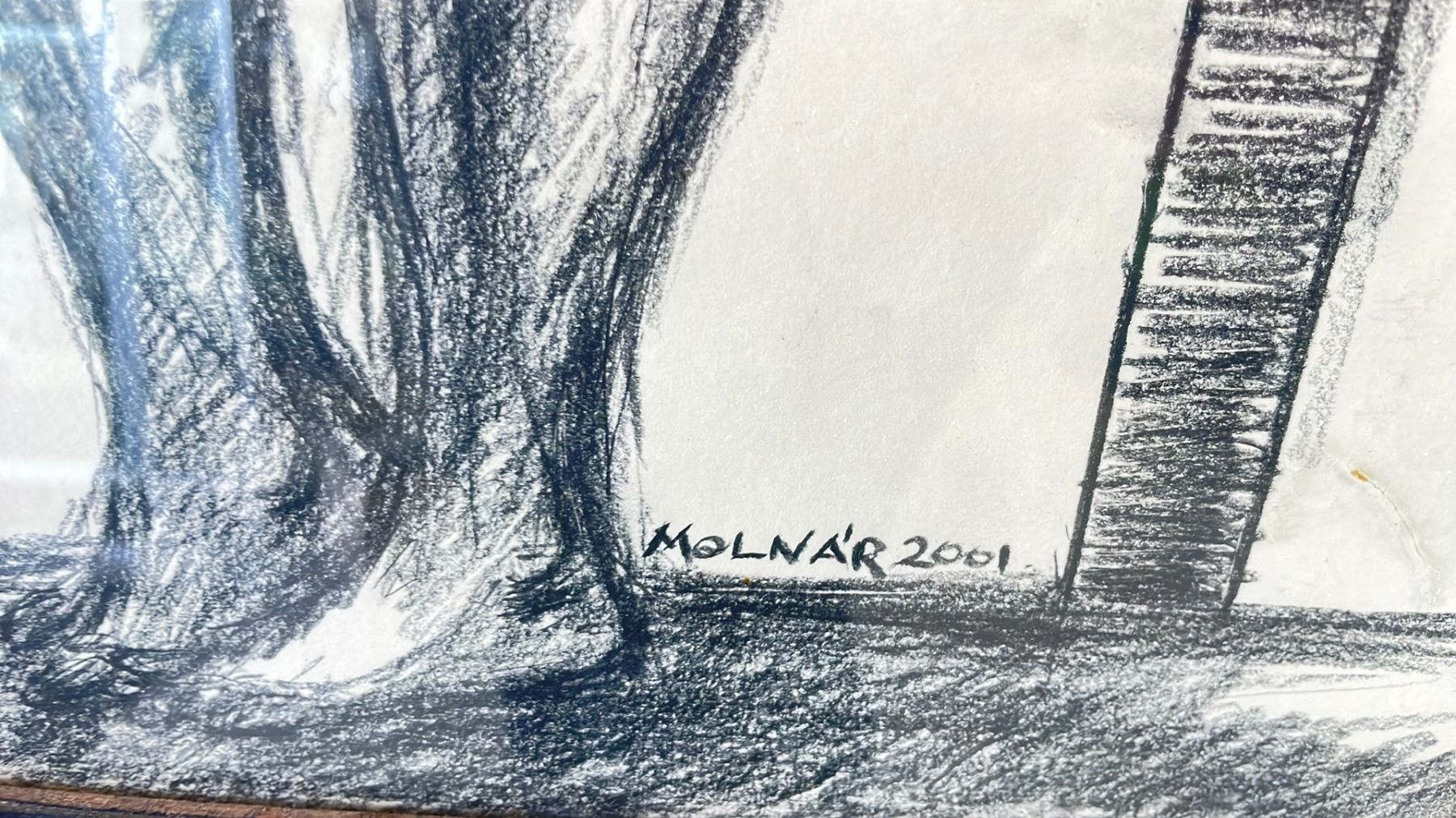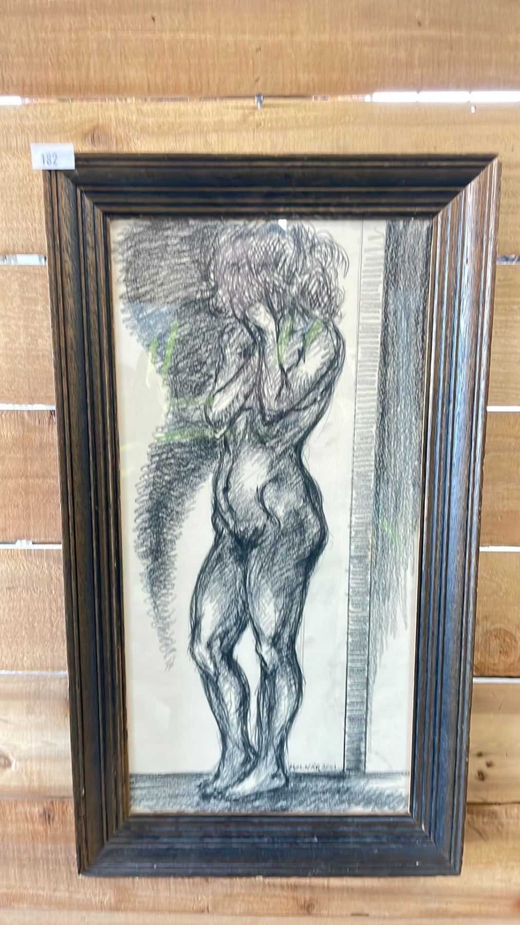 FRAMED NUDE CHARCOAL PENCIL SKETCH BY FRANK MOLNAR OF "STANDING WOMAN" 12" X 24"