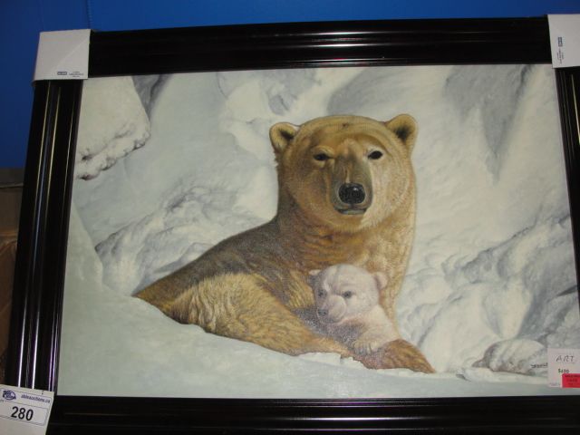 FRAMED OIL ON CANVAS POLAR BEARS ARTWORK