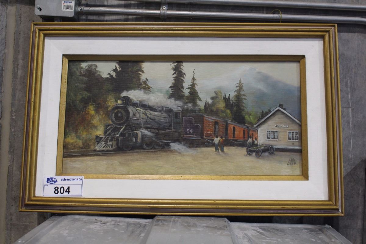 FRAMED OIL PAINTING BY AHA LORA TRAIN SCENE