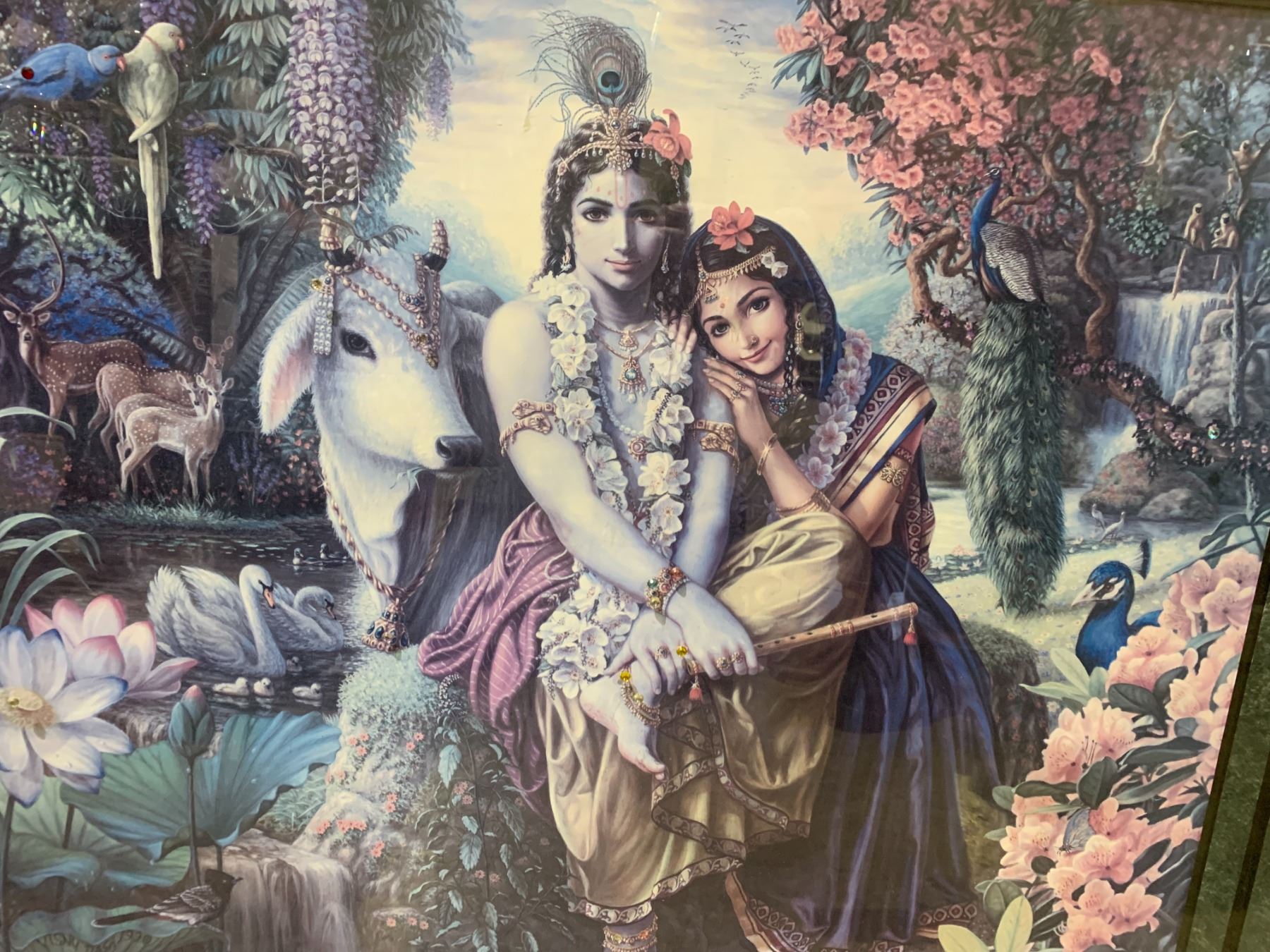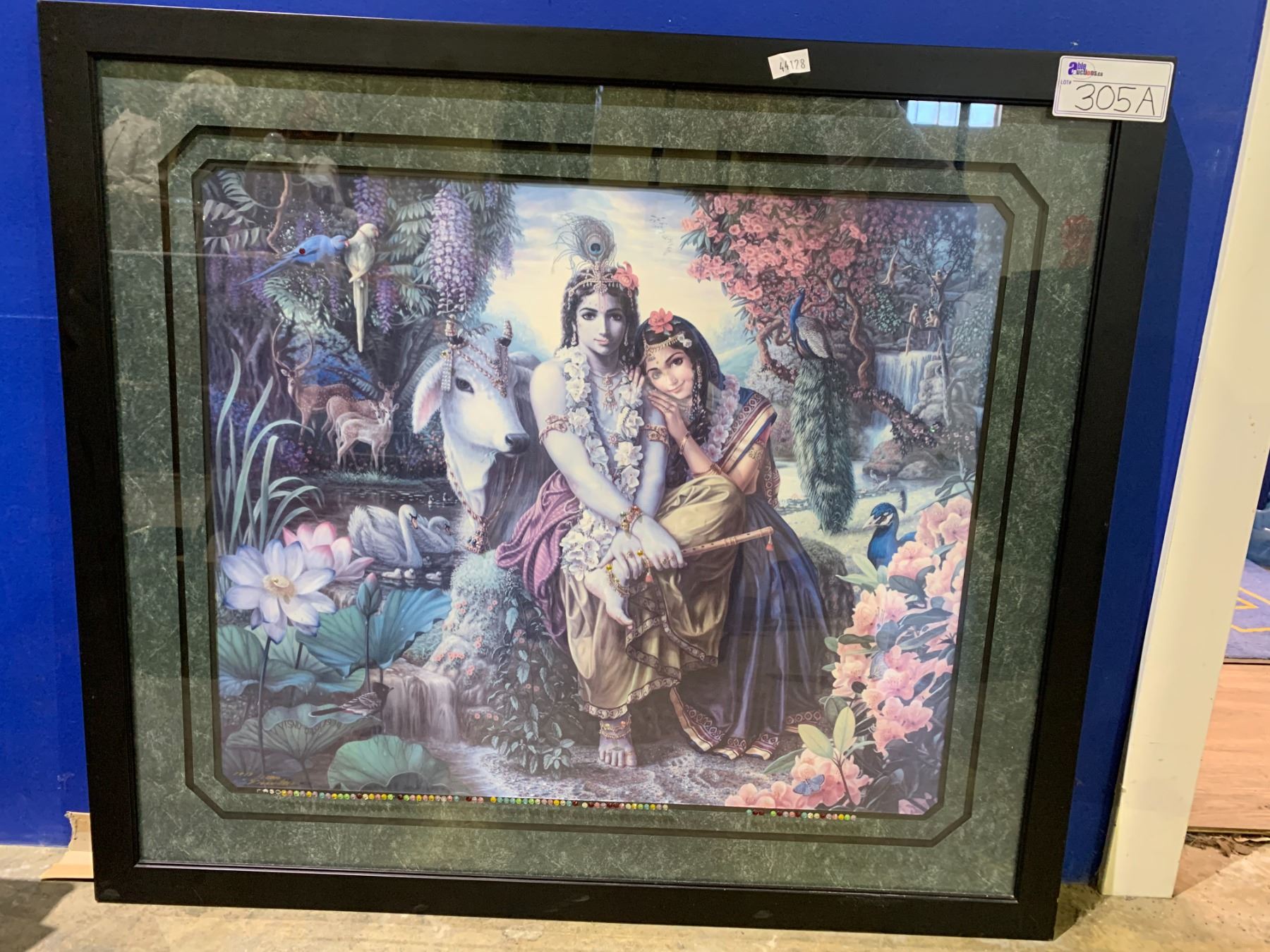 FRAMED OIL PAINTING BY VISNU DASAI OF HINDU GODS APPROX 40"X35"
