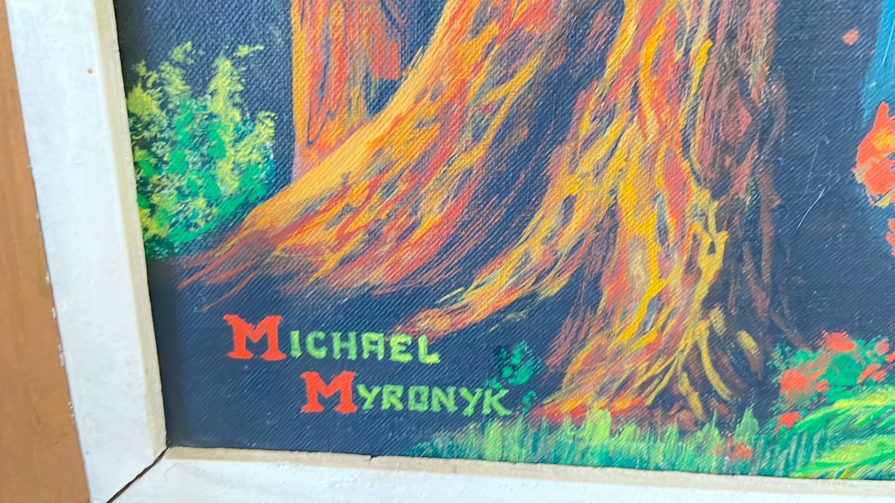 FRAMED ORIGINAL OIL ON BOARD BY MICHAEL MYRONYK TITLED "WATERFALL" 34" X 27"