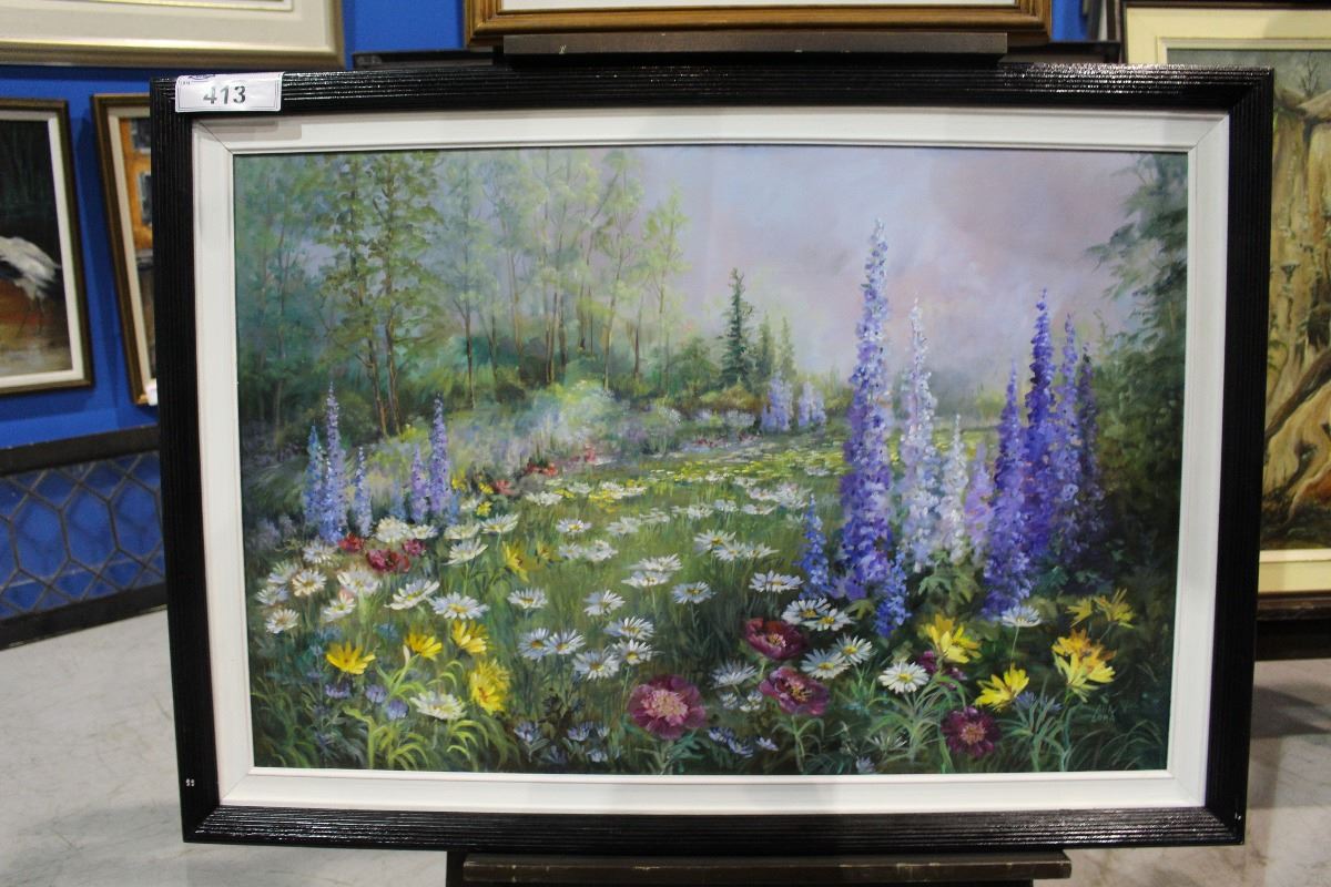 FRAMED ORIGINAL OIL ON CANVAS PAINTING "FLOWERS IN THE MEADOW" BY ARTIST LORA ARMBRUSTER