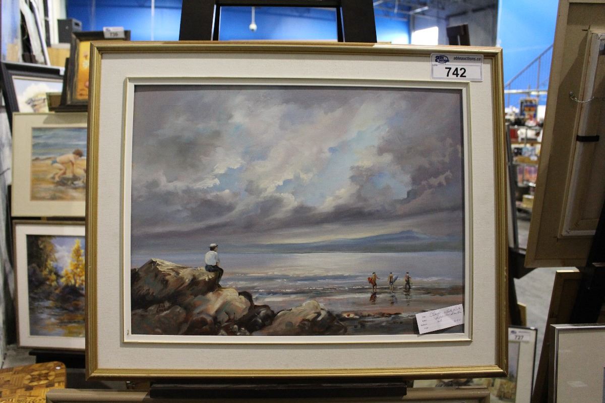 FRAMED ORIGINAL OIL ON CANVAS PAINTING TITLED "CLOUDS AT WHITE ROCK" BY ARTIST LORA ARMBRUSTER