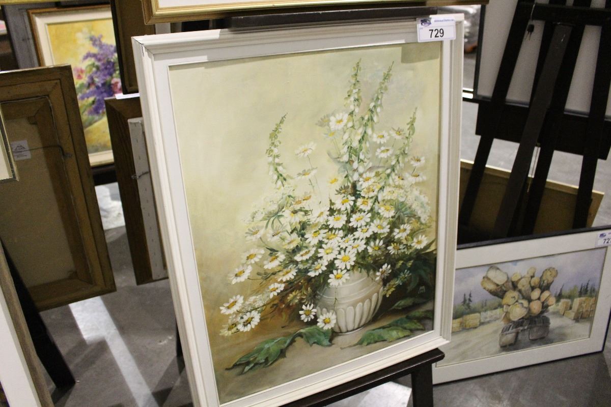 FRAMED ORIGINAL OIL ON CANVAS PAINTING TITLED "FOX GLOVES AND DAISIES" BY ARTIST LORA ARMBRUSTER