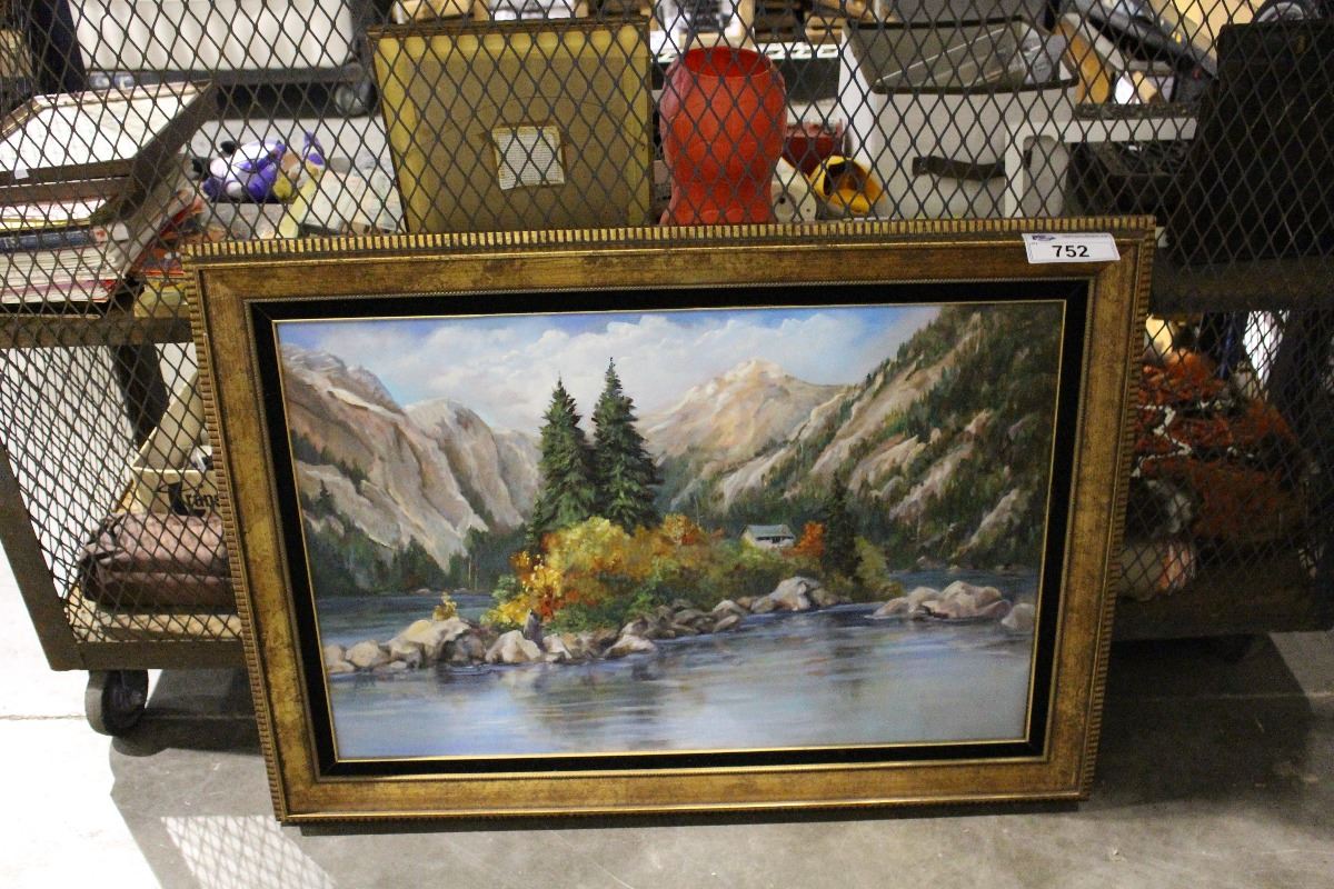 FRAMED ORIGINAL OIL ON CANVAS PAINTING TITLED "PRIVATE ISLAND PITT LAKE NORTH" BY ARTIST LORA ARMBRUSTER